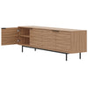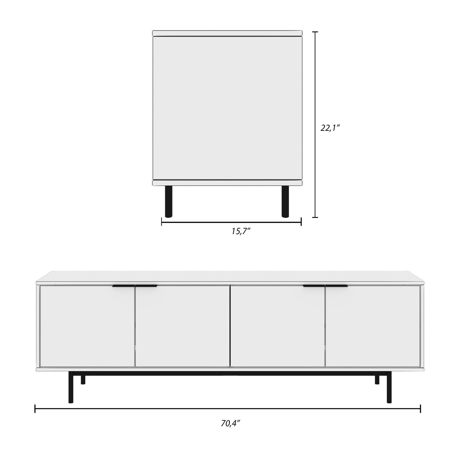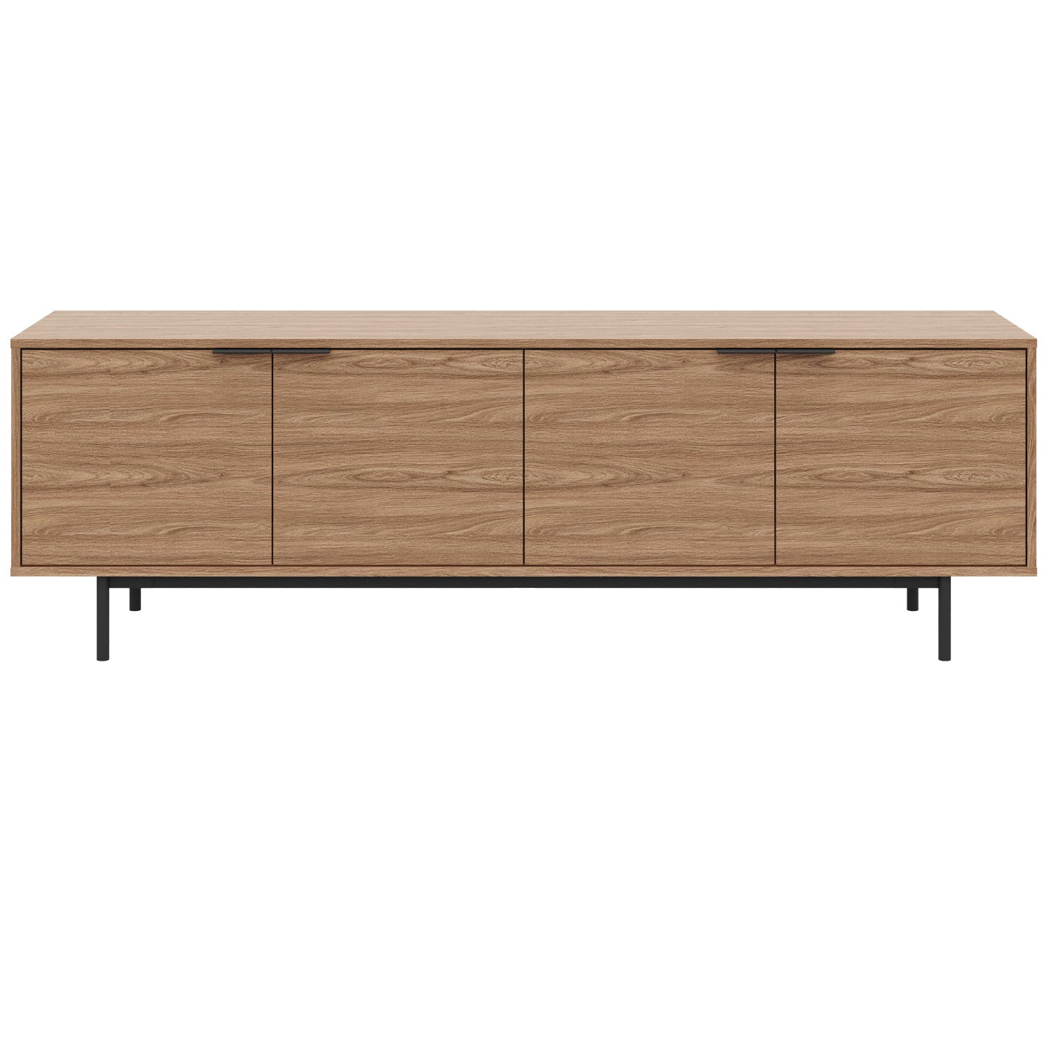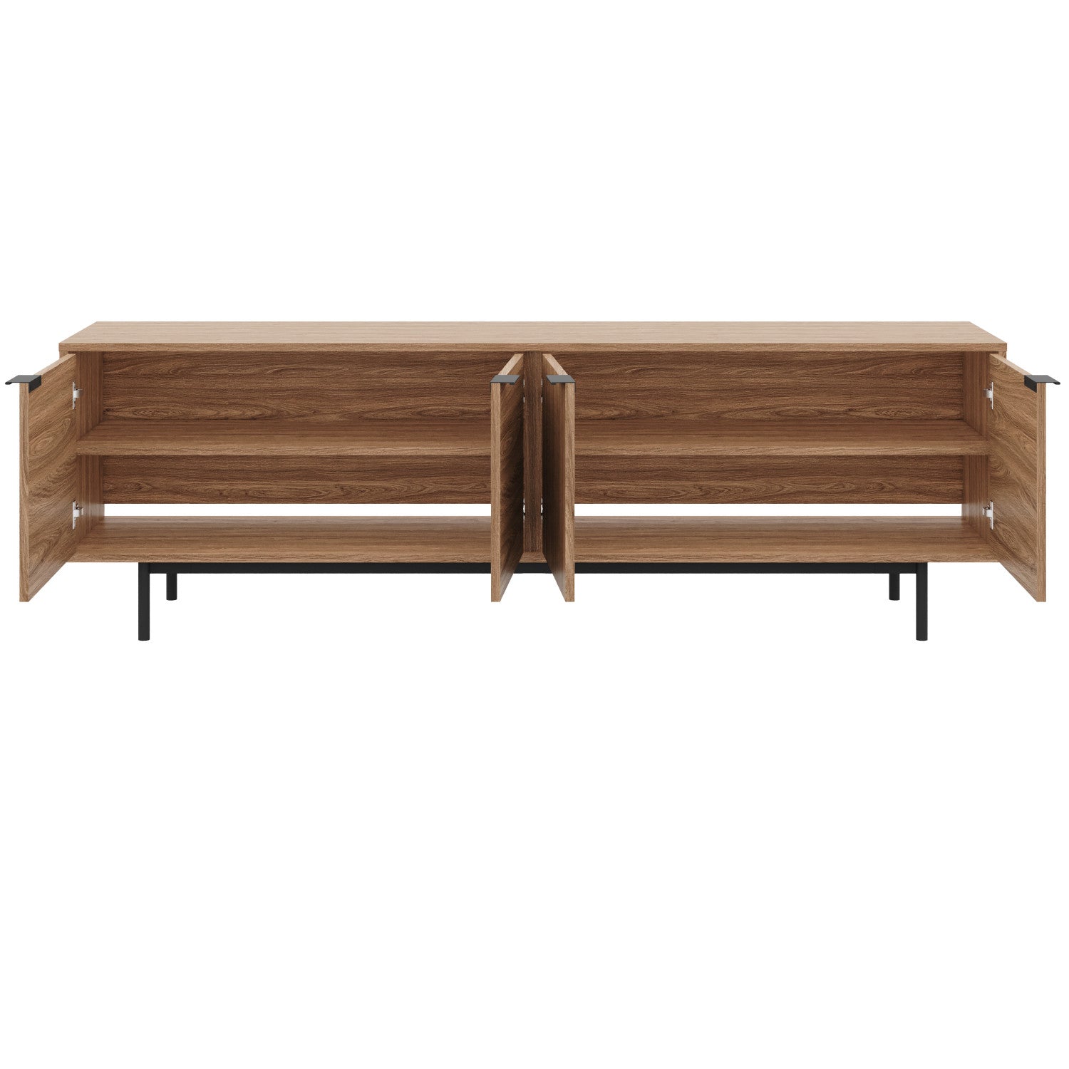 Designed with quiet elegance and refined proportions, this low-profile console features four seamless doors that open to reveal generous hidden storage. Its minimalist form is elevated by clean lines and a slim base, giving the piece a grounded yet airy presence. Thoughtfully designed to adapt to any space, it functions beautifully as a media console, sideboard or multi-purpose cabinet — bringing effortless order to everything from electronics to tableware.