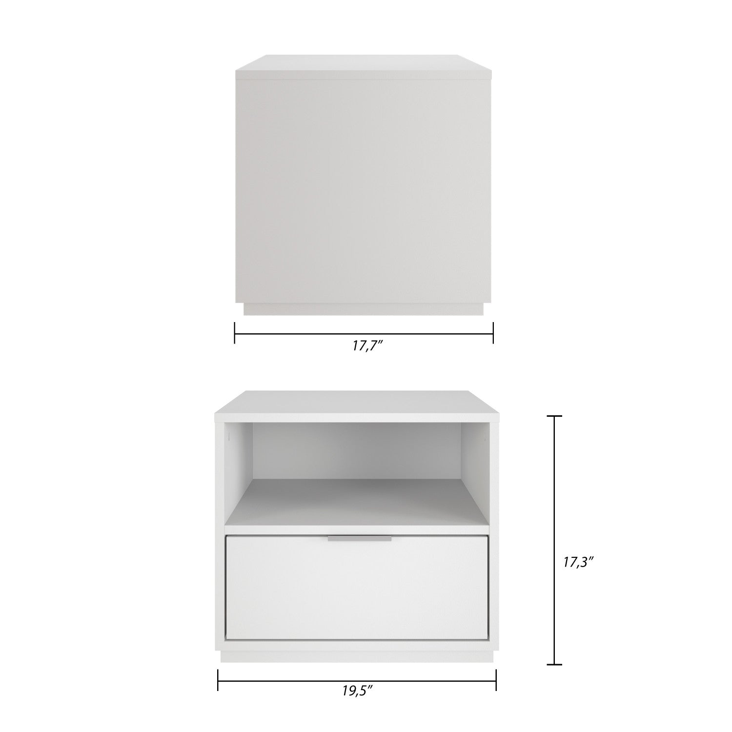 This nightstand is like the James Bond of bedroom furniture, giving your space a sleek and contemporary makeover while whispering, "I've got your storage secrets, darling." The undercover drawer slyly conceals your odds and ends, playing hide-and-seek, while the open shelf above is the red carpet for accents that are here to steal the spotlight.