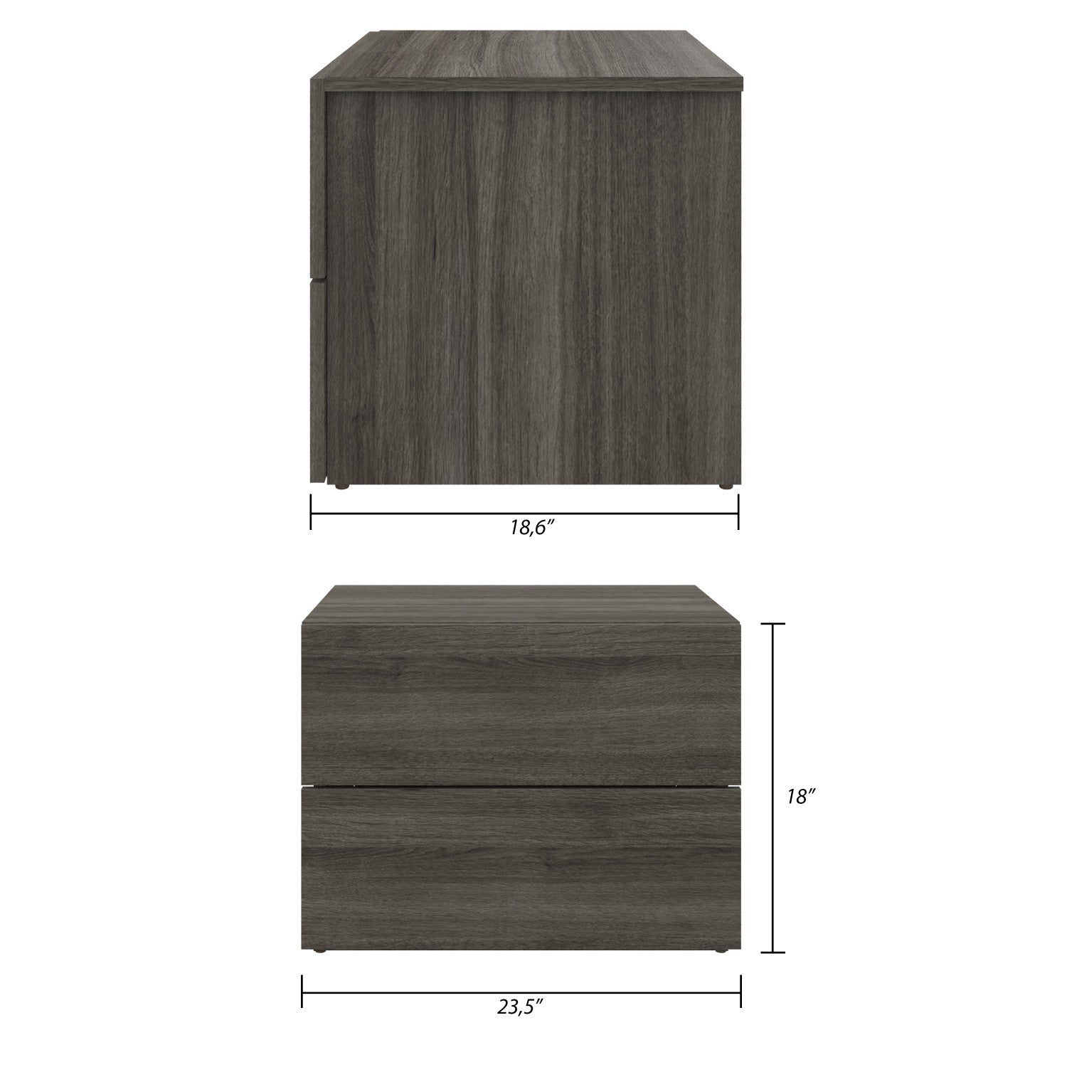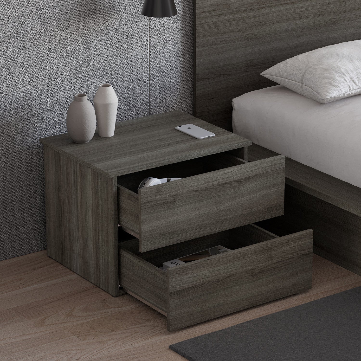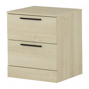 This 2-drawer nightstand offers 2 convenient storage drawers to keep your books, magazines and all personal belongings handy while in bed. The nightstand's rich Natural blond oak finish will give your bedroom a Scandinavian vibe while adding convenient storage.