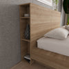 Effortlessly elevate your space with this modern headboard – a stylish and functional centerpiece that seamlessly blends contemporary design with practical functionality. This clever headboard boasts the perfect combination of clean lines and a minimalist aesthetic, adding a touch of sophistication to your bedroom decor. Crafted from high-quality engineered wood, our headboard showcases the natural grain color variation, bringing an organic touch to your space. Enjoy the added convenience of three shelves on each side, perfect for books or storage. Plus, with a one-year warranty, you can trust in the durability and quality of your new Natural oak headboard.
