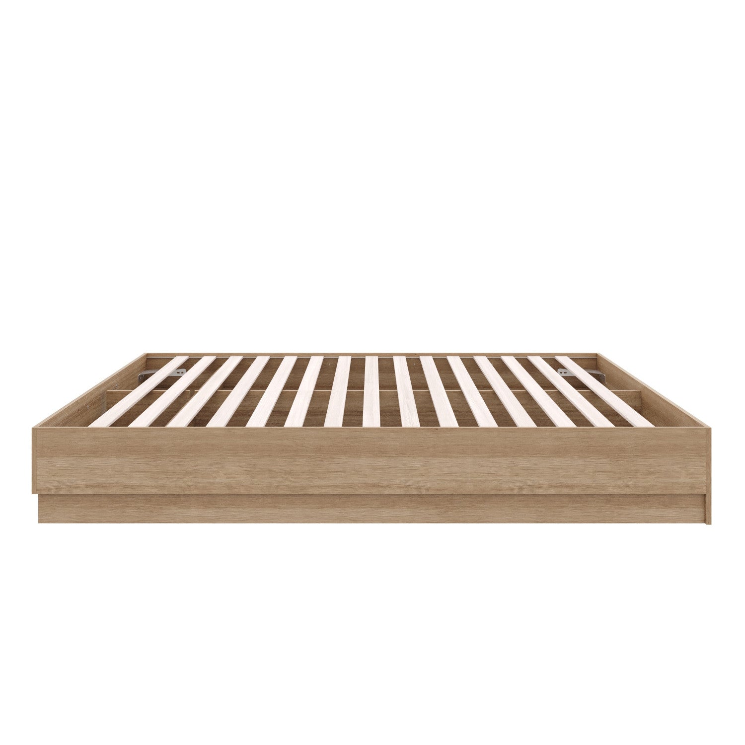 Immerse yourself in the essence of cozy minimalism with our elegant platform bed, an ideal refresh for any bedroom style. Drawing inspiration from serene Zen aesthetics, this bed boasts a smooth oak finish that gracefully embraces your mattress. The platform design provides a modern and sleek look, creating a sense of openness and simplicity in your bedroom. Its clean lines and minimalistic frame blend seamlessly with various décor styles. Say goodbye to the hassle of a box spring with our innovative central support system, ensuring stable and comfortable sleep without the bulk. Assembly is a breeze, requiring only a screwdriver, and your set is conveniently delivered to your door.In summary, our Platform Bed offers a high-end, modern solution with premium construction, minimalist design, and easy assembly—a perfect choice for transforming your bedroom into a stylish oasis.