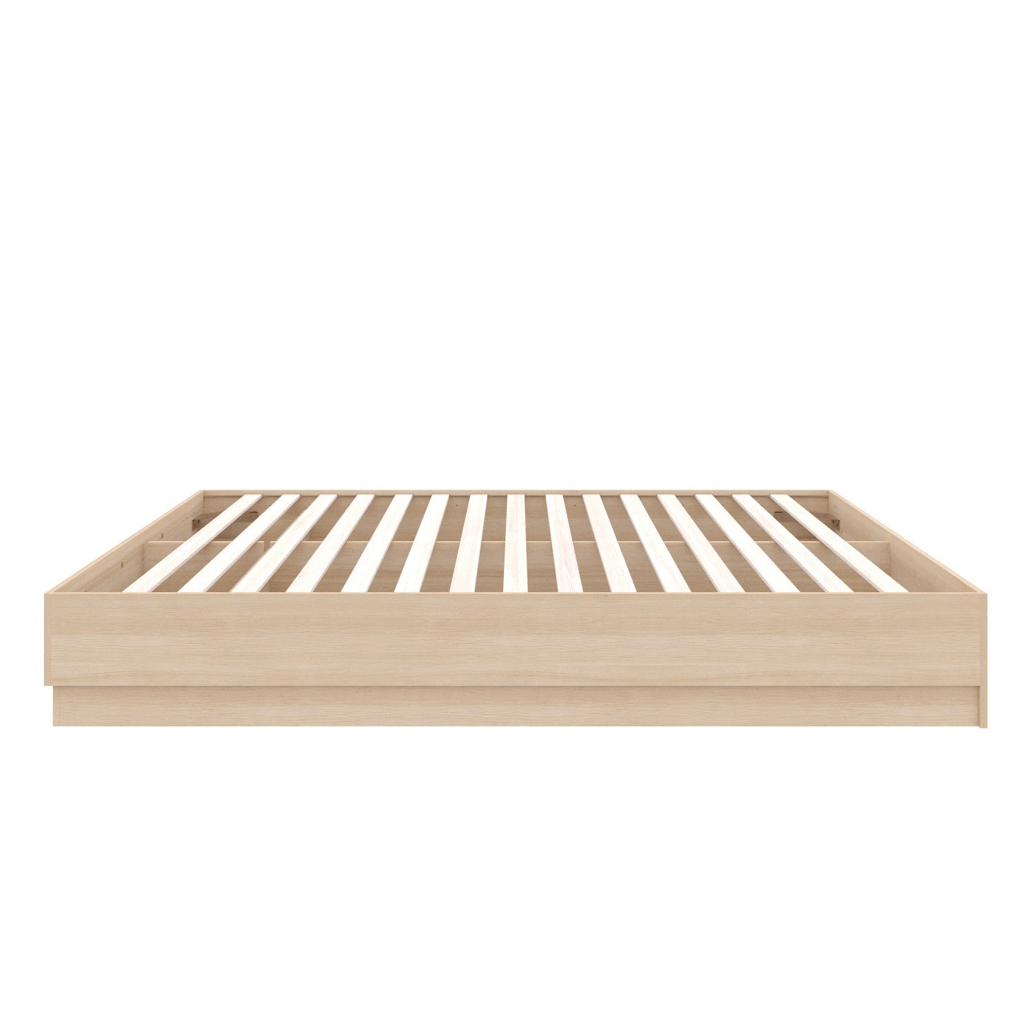 Immerse yourself in the essence of cozy minimalism with our elegant platform bed, an ideal refresh for any bedroom style. Drawing inspiration from serene Zen aesthetics, this bed boasts a smooth oak finish that gracefully embraces your mattress. The platform design provides a modern and sleek look, creating a sense of openness and simplicity in your bedroom. Its clean lines and minimalistic frame blend seamlessly with various décor styles. Say goodbye to the hassle of a box spring with our innovative central support system, ensuring stable and comfortable sleep without the bulk. Assembly is a breeze, requiring only a screwdriver, and your set is conveniently delivered to your door.In summary, our Platform Bed offers a high-end, modern solution with premium construction, minimalist design, and easy assembly—a perfect choice for transforming your bedroom into a stylish oasis.