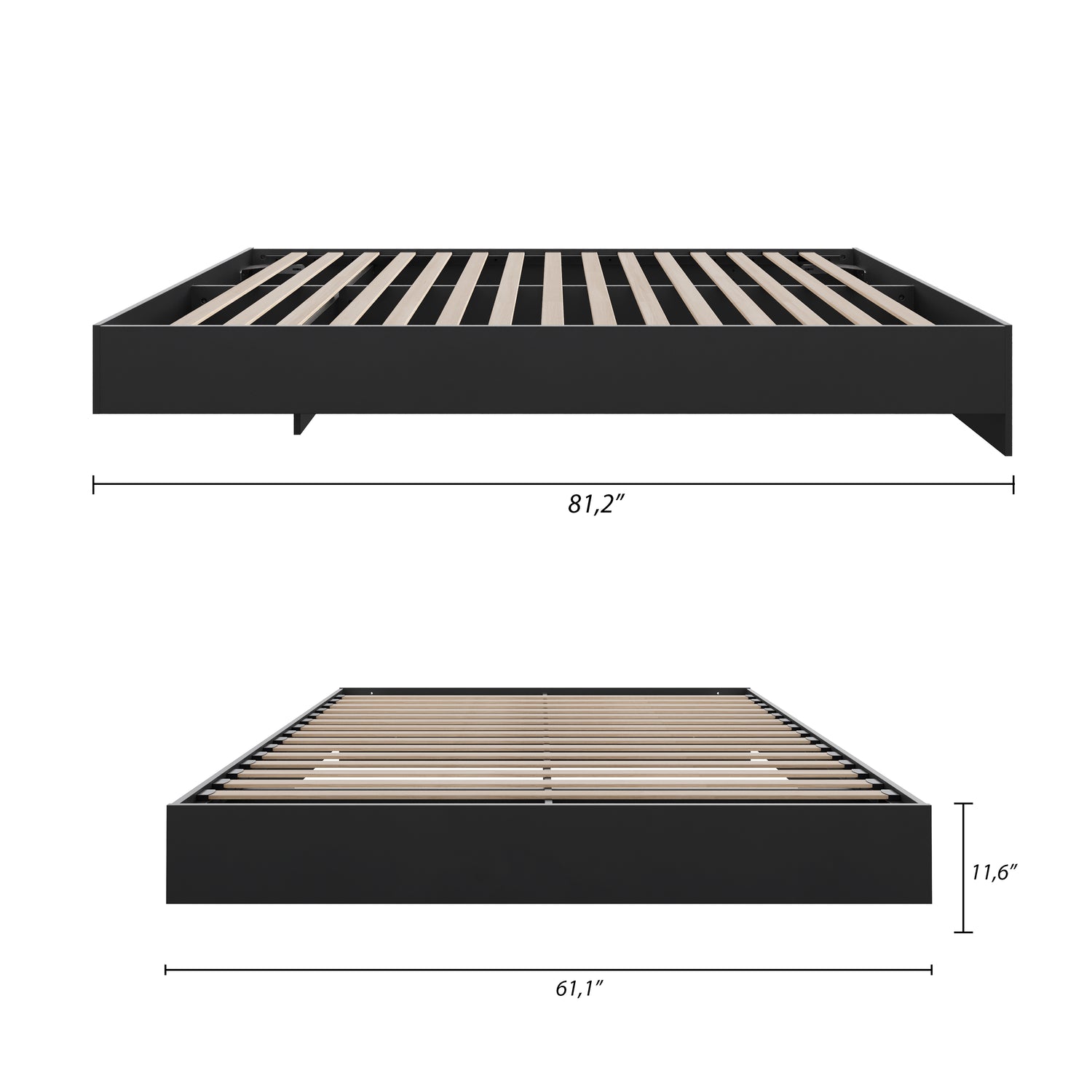 Nexera queen size platform bed in Black can be paired with different Nexera queen size headboards to create a complete bed set. Its unique & modern design gives the impression the bed floats above the ground, giving the entire room an airy feel. This bed also features a unique metal and hardwood slat construction allowing for easy assembly, sturdy construction and easier handling.
