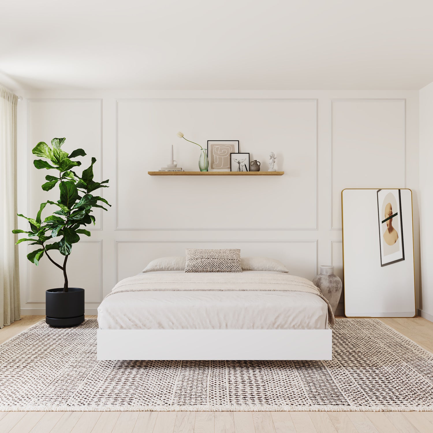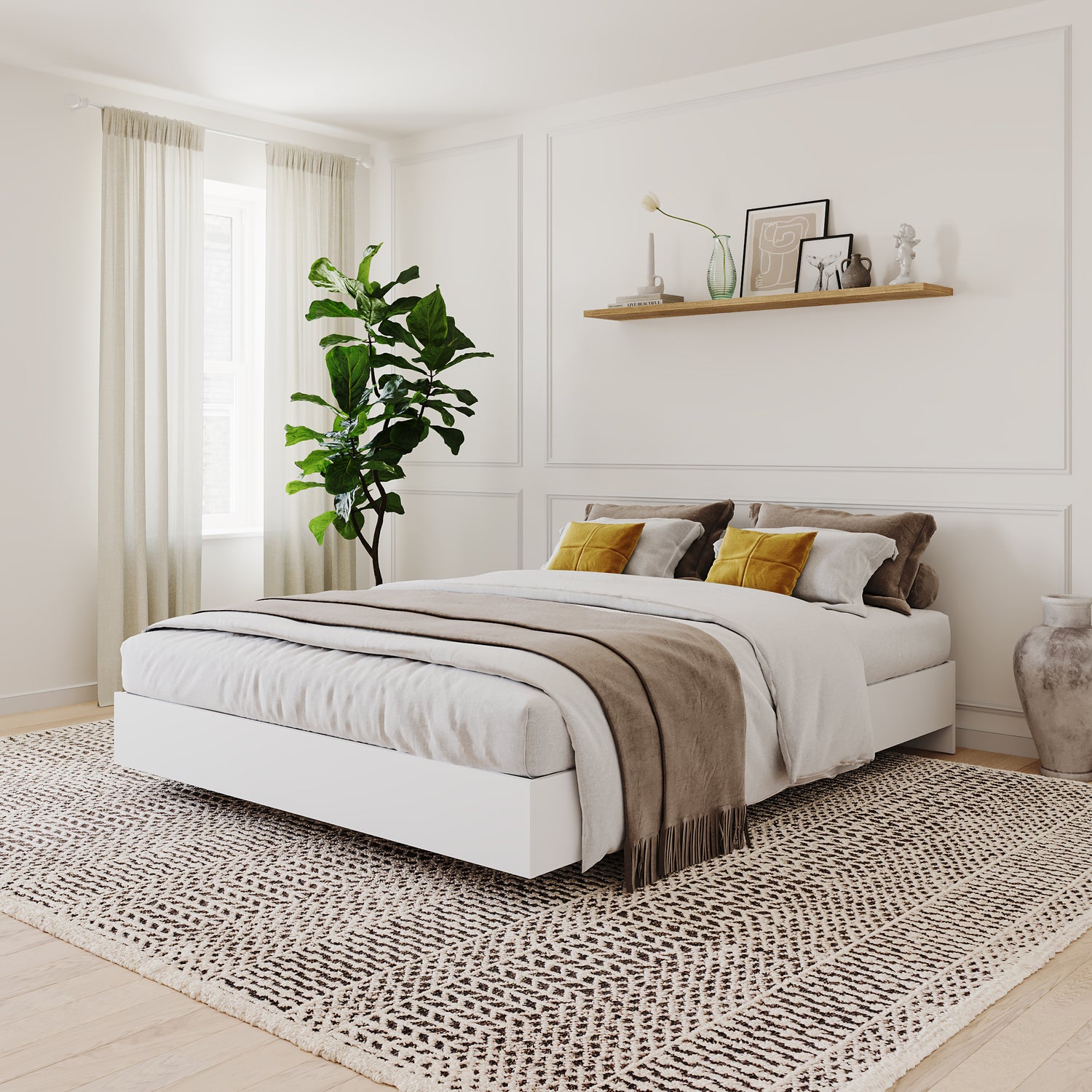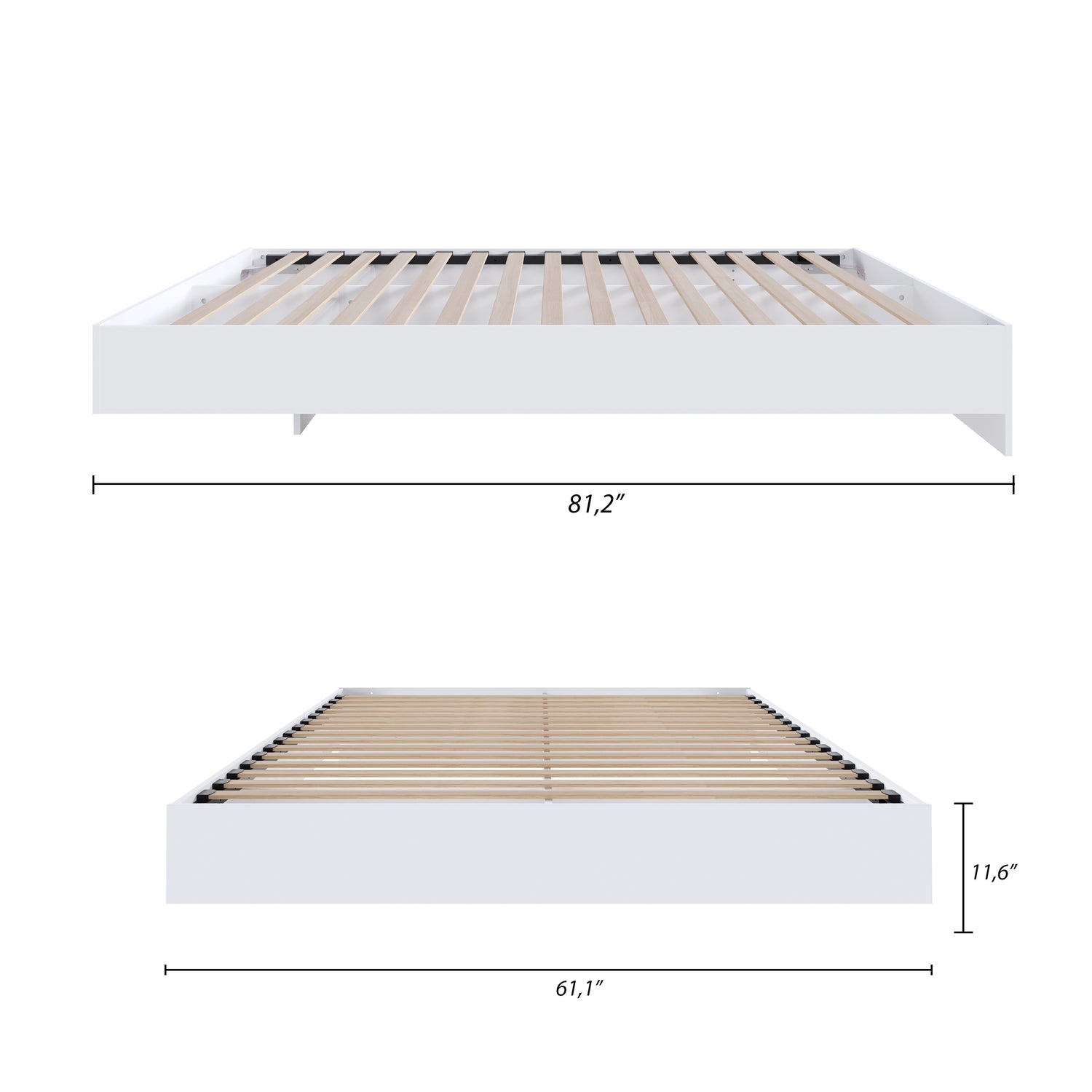 Nexera queen size platform bed in White can be paired with different Nexera queen size headboards to create a complete bed set. Its unique & modern design gives the impression the bed floats above the ground, giving the entire room an airy feel. This bed also features a unique metal and hardwood slat construction allowing for easy assembly, sturdy construction and easier handling.
