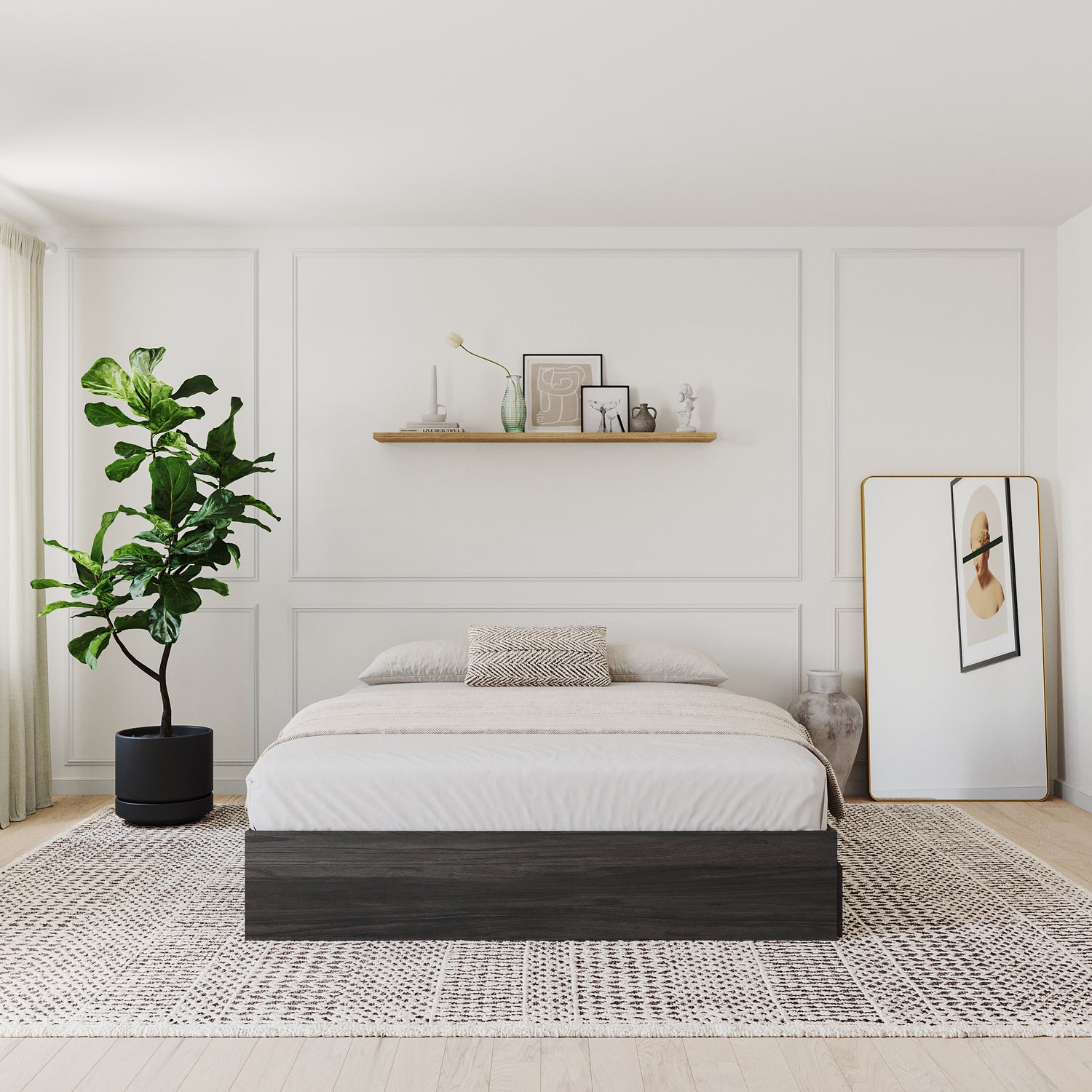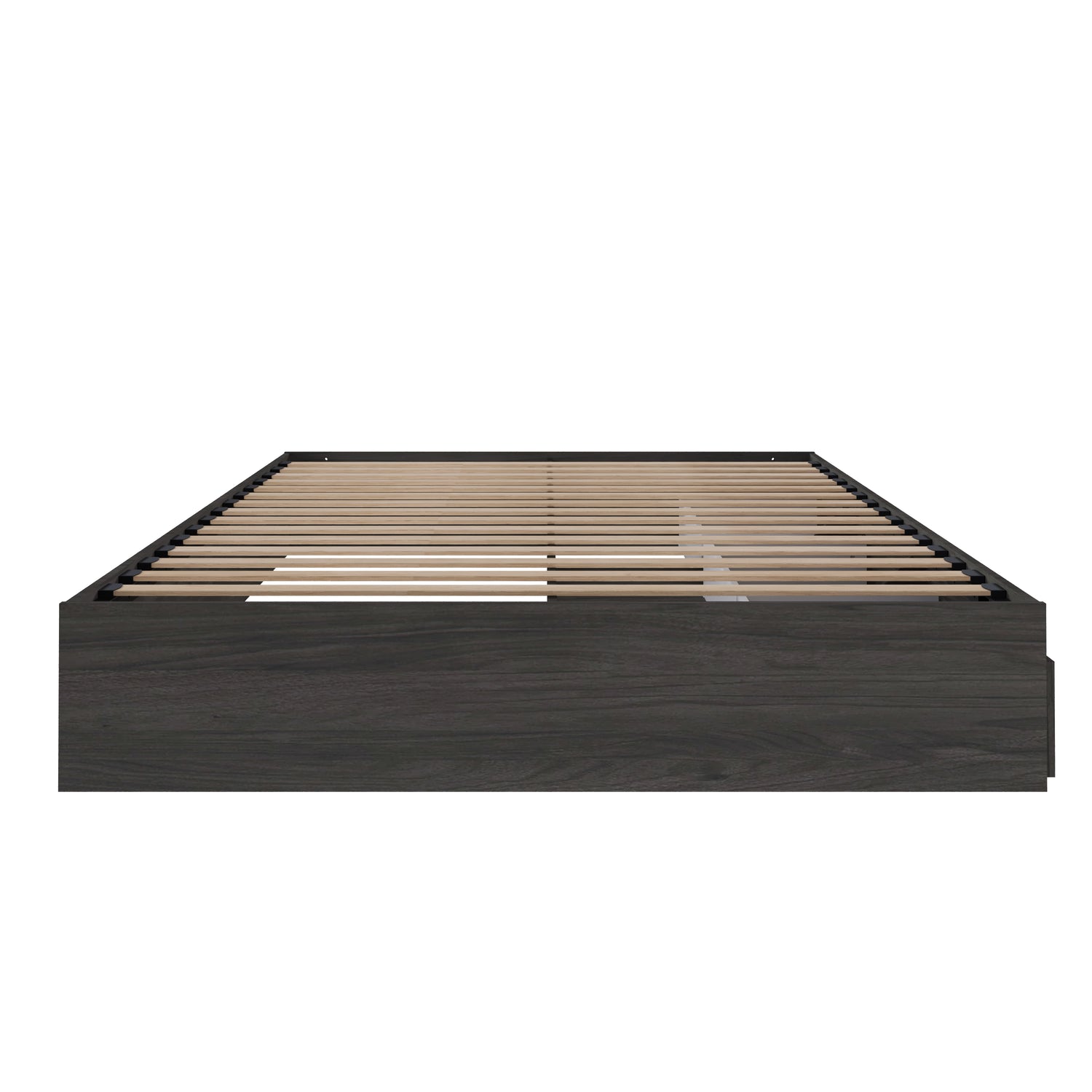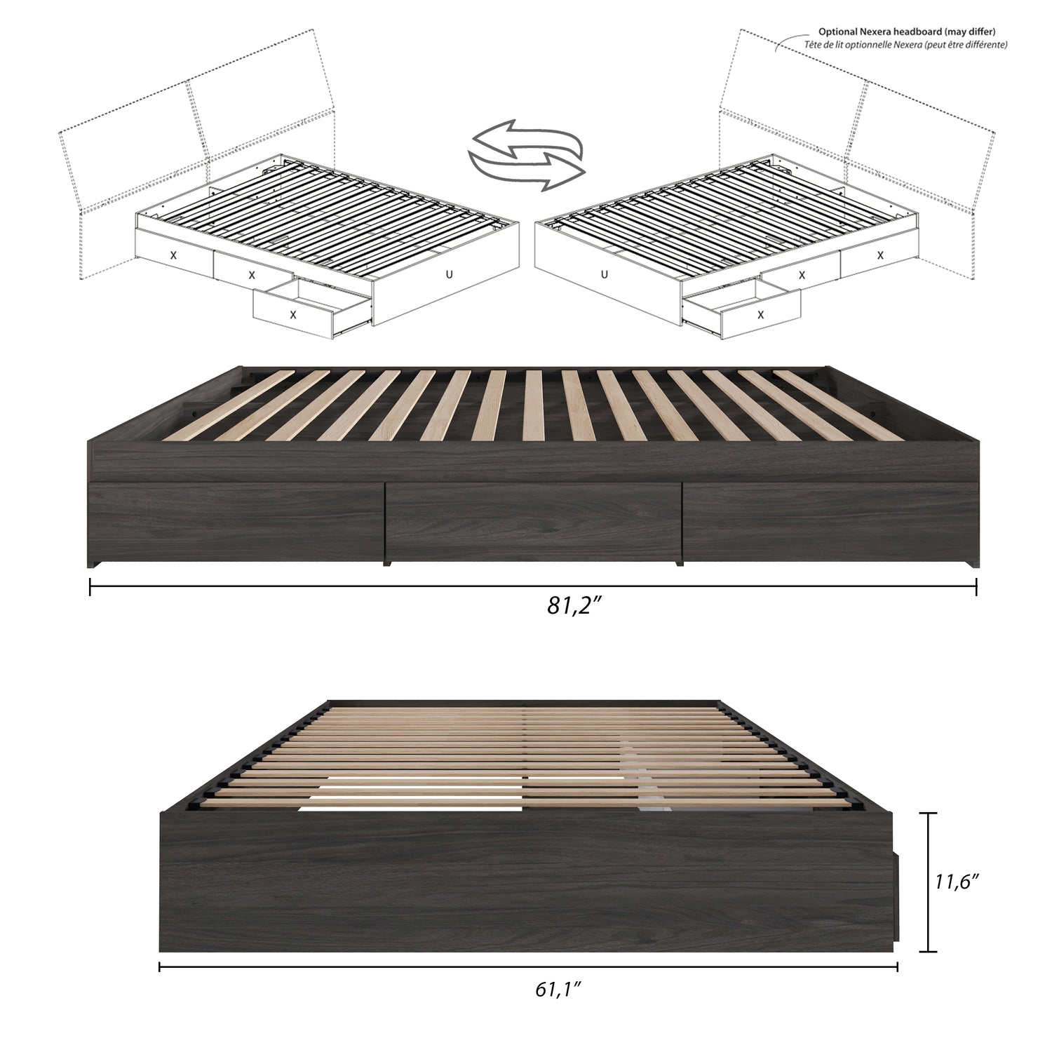 Nexera Queen size 3-drawer bed in Bark Grey can be paired with different Nexera Queen size headboards to create a complete bed set with lots of storage. This Queen Size 3-Drawer Storage bed offers 3 convenient drawers, ideal to store away beddings, clothes, toys, books without taking any extra square footage. It's also entirely reversible, so you can decide on which side of the bed you prefer having the 3 drawers. This bed frame features a unique metal and hardwood slat construction allowing for easy assembly, sturdy construction and easier handling.