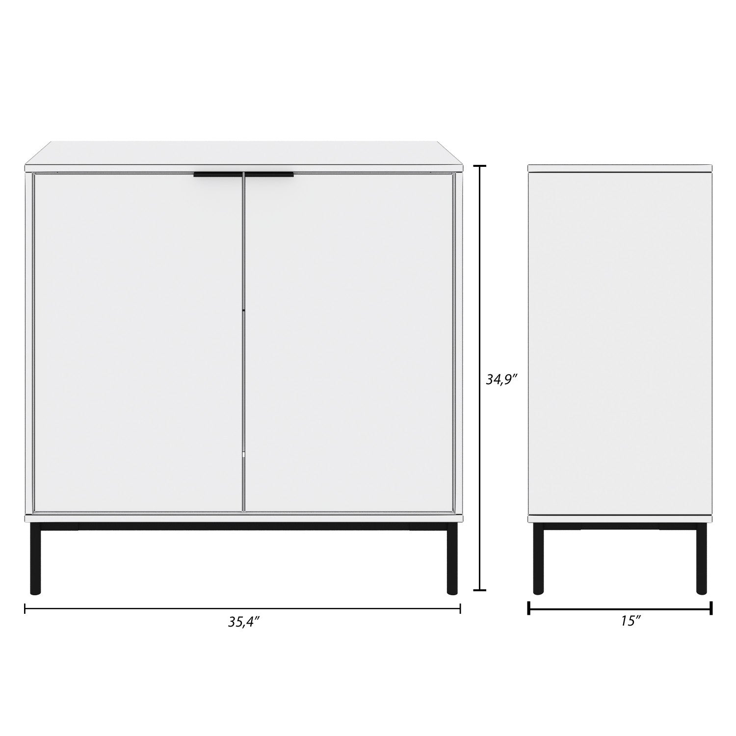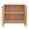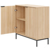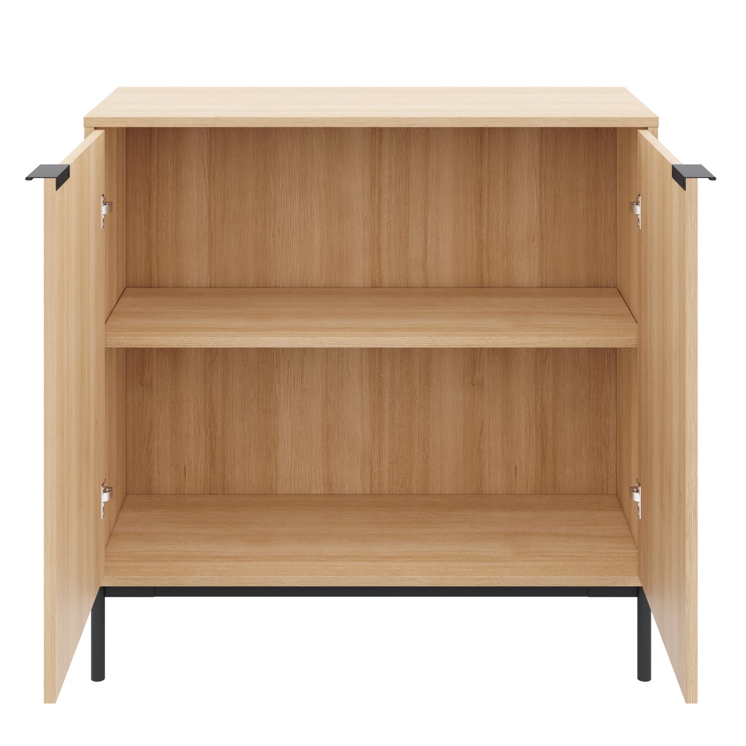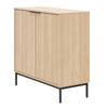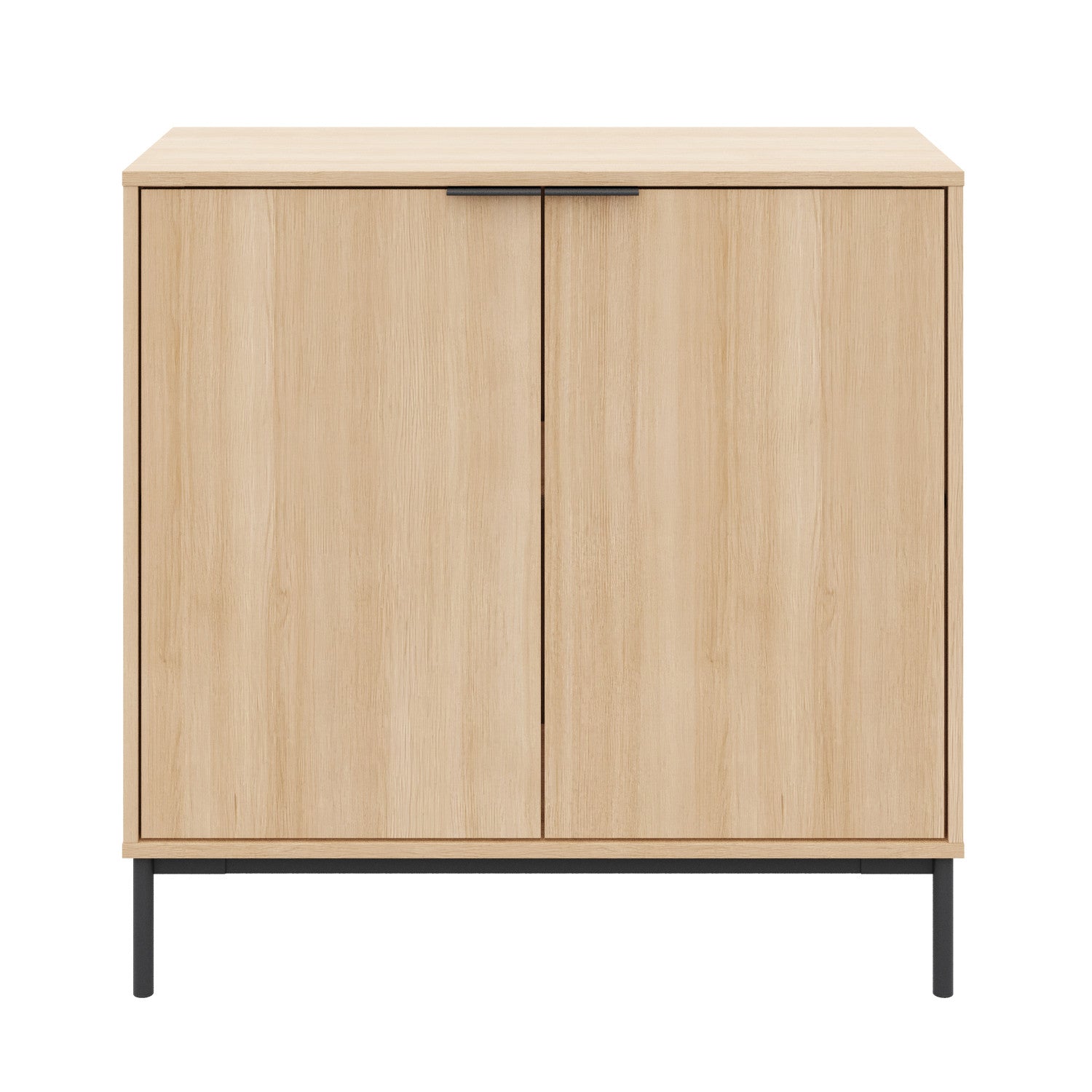 Clean, understated, and effortlessly stylish, the Slim Storage Cabinet in warm acacia woodgrain finish brings modern elegance to any space. Its generous storage and slender silhouette make it a versatile addition to the dining area, hallway or living room. The textured acacia woodgrain finish adds natural charm and character, while the soft-close double doors conceal two spacious shelves—perfect for organizing everything from decor to home essentials. Slim black metal legs lift the cabinet for a light and contemporary feel.