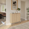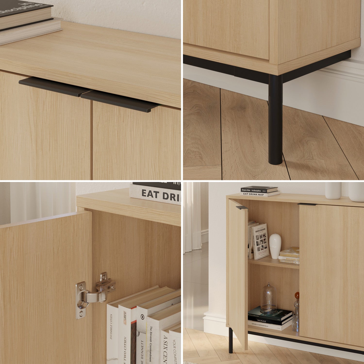 Designed to deliver high-impact style in compact spaces, the Slim Storage Console blends sleek function with timeless elegance. Its shallow depth and wall-mounted design make it the perfect solution for narrow hallways, entryways or small-space living. Finished in a warm Acacia woodgrain, this piece adds an inviting natural tone while staying contemporary. The minimalist black metal hairpin legs elevate the console for an airy feel, and behind the soft-close double doors, two internal shelves offer a discreet home for everyday essentials.