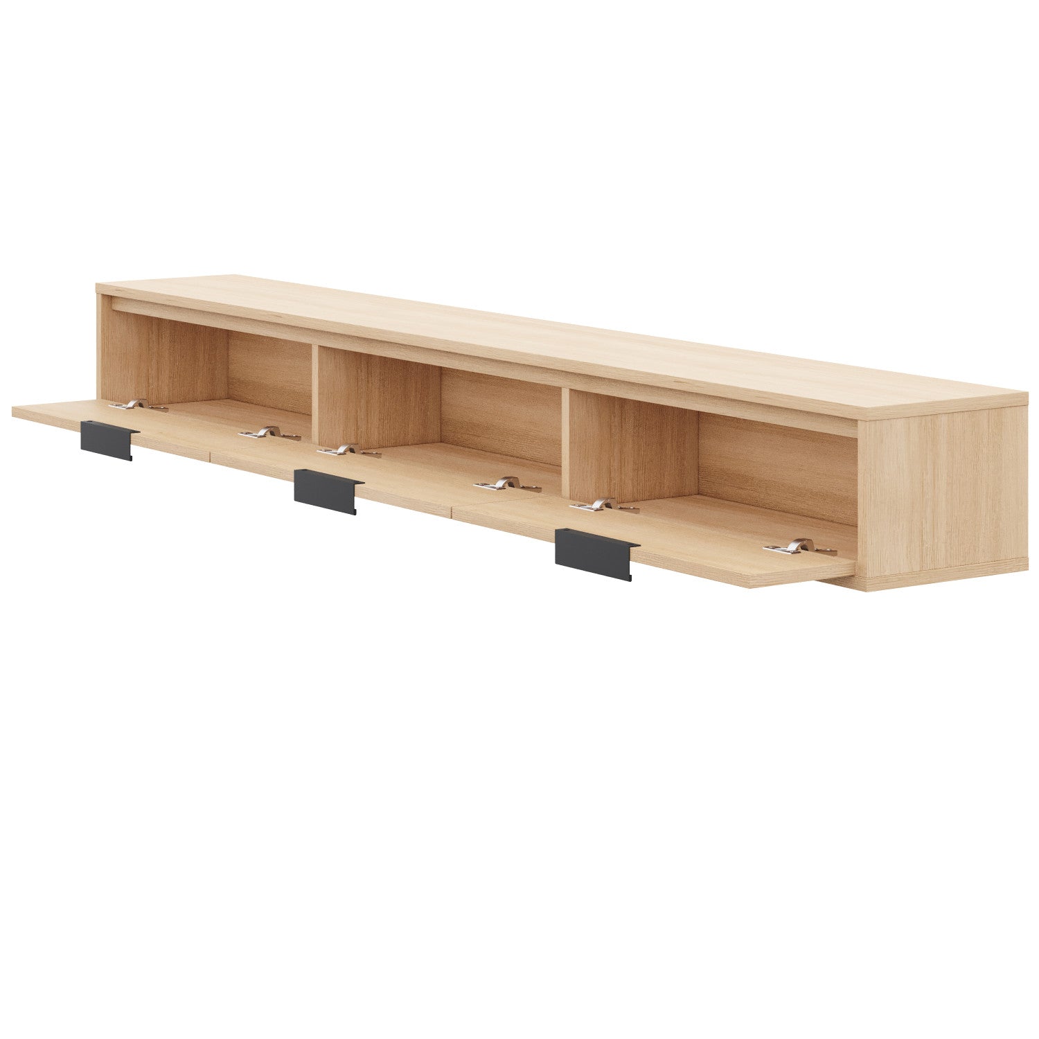 This modern floating console brings minimalist elegance and smart storage to any room. Designed with clean lines and a low-profile silhouette, it features four soft-close compartments to keep your essentials hidden yet easily accessible. Whether used as a media unit, hallway shelf or wall-mounted cabinet, it frees up floor space while creating a streamlined, contemporary look.