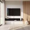 This floating console blends clean lines with quiet functionality. Designed with a flat top surface for display, a spacious open shelf for media or books, and a concealed compartment to keep essentials out of sight, it offers a perfect balance of form and function. Whether placed in a living room, hallway or home office, it brings lightness and clarity to the space — all while providing discreet storage in a streamlined silhouette.