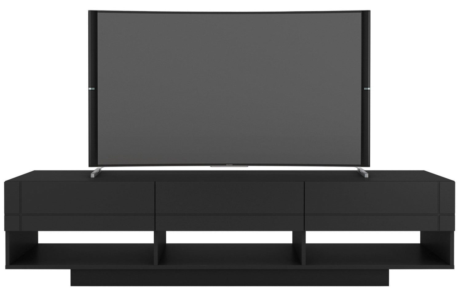 Stereo Collection from Nexera is a trendy and easy to live entertainment collection offered in a black melamine and matte lacquer finish. Stereo 72-inch TV stand features 3 storage drawers and 3 open spaces for your electronic components; these 3 bottom cubbies are also opened at the back to facilitate wire access and optimize air flow.