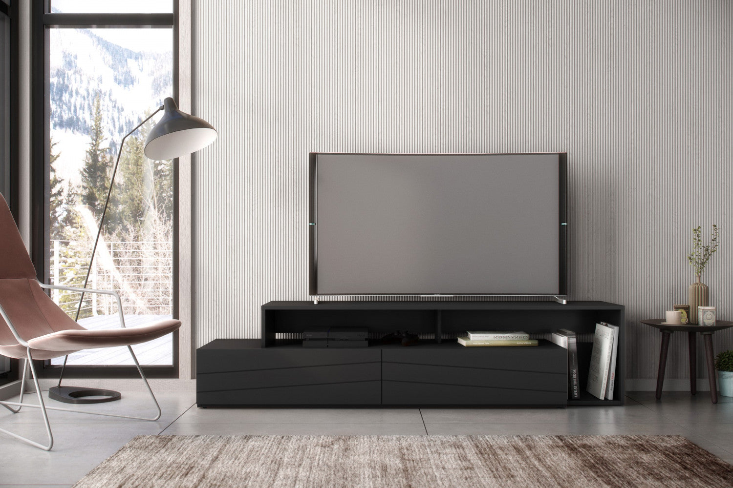 The Tonik entertainment collection from Nexera was created to reflect clean lines, a refreshing modern look and contrasting volumes. This 72-inch TV stand offers open center compartments, the perfect spot for cable boxes and gaming consoles, along with a two drawers below for maximum storage space for remotes, DVDs, and more. Better yet, a wire management opening on the back panel provides easy access to cords and outlets.