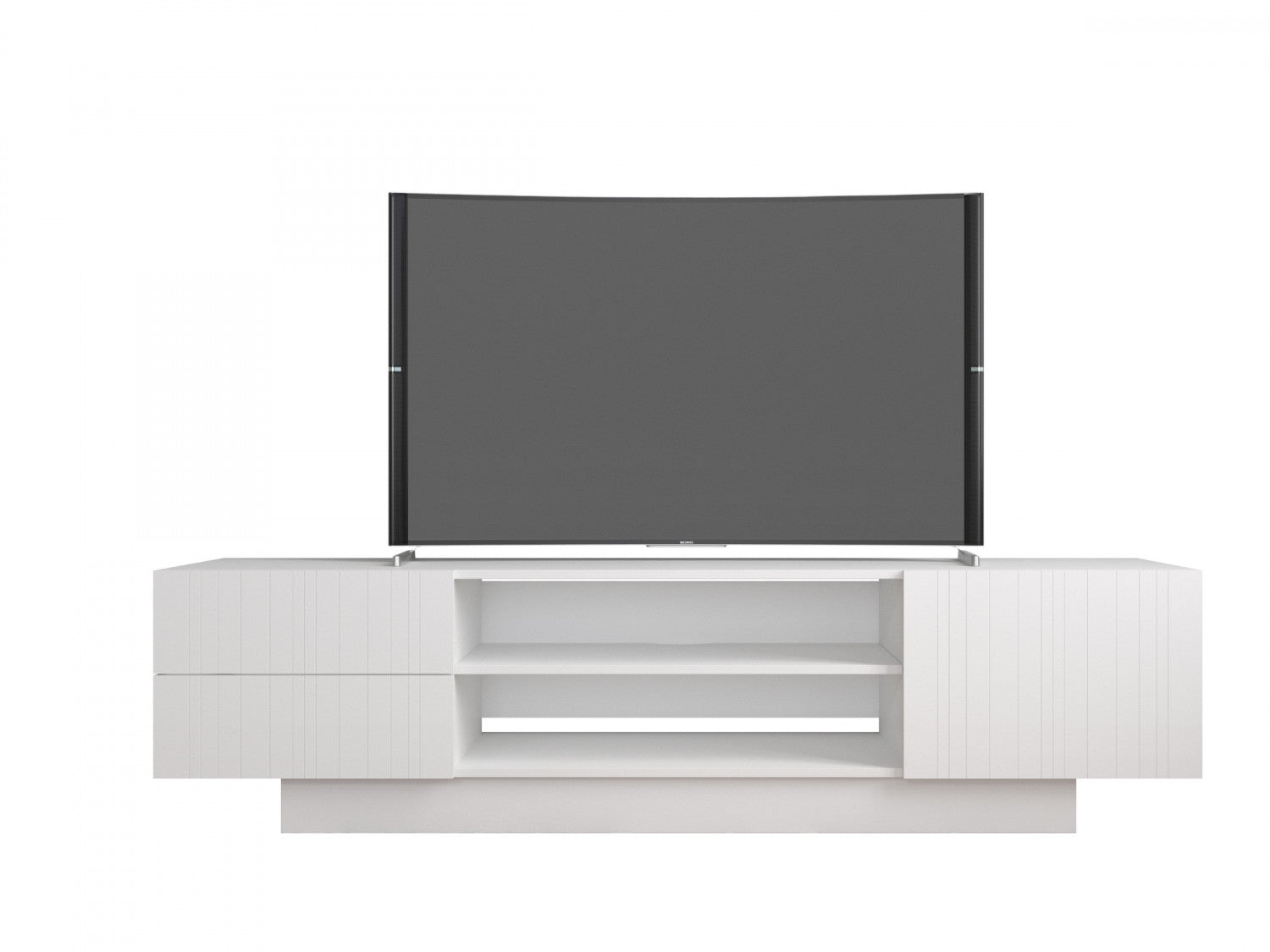 Ideal for movie marathon essentials or for your favorite potted plants, this TV stand with its modern yet cozy look is the perfect addition to your trendy & minimalist living room. This Marble collection 72'' TV stand offers open shelf areas, 2 drawers and a door with additionnal storage space. The door panels have a modern twist with a linear construction detail that brings timeless depth and texture in a matte white lacquer finish.