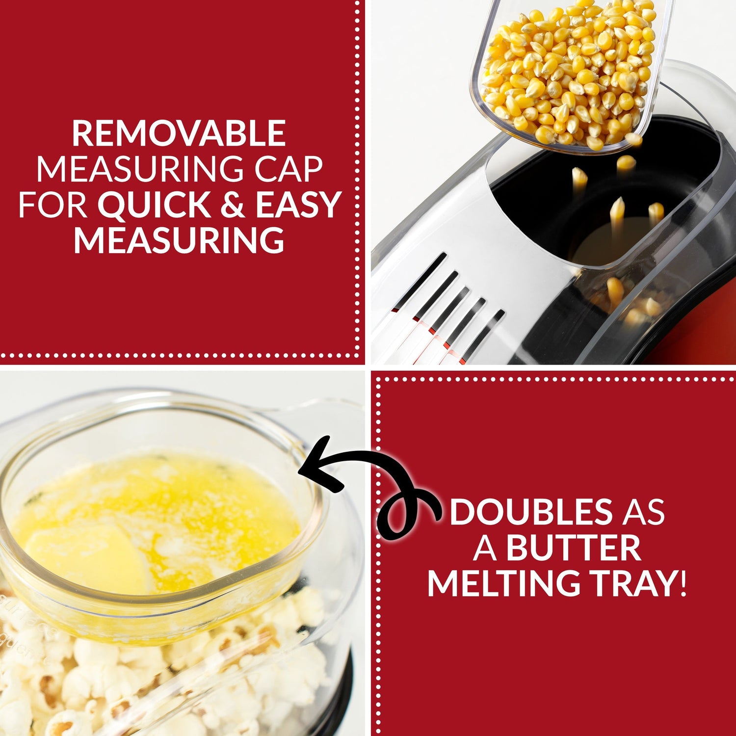 The Nostalgia 16-Cup Hot Air Popcorn Maker is tabletop sized party pleaser. The electric popping system uses hot air instead of oil, producing a light and healthy popcorn snack. Includes a measuring cup to ensure the proper number of kernels are used in the hot air popcorn popper, and the clear top housing allows for easy viewing. Measuring cup also works great for melting butter. Enjoy the fresh taste of hot popcorn in minutes.