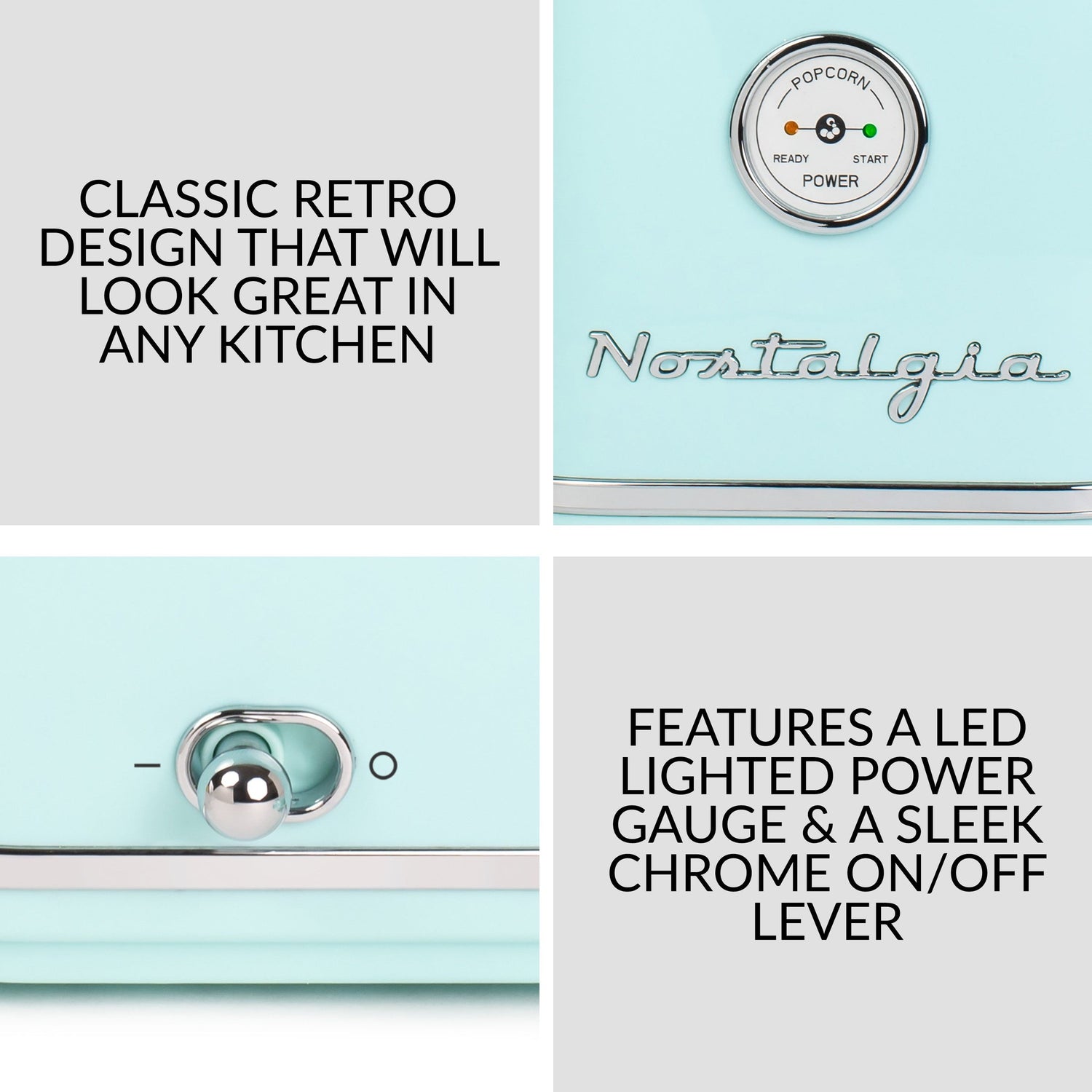 The Nostalgia 12-Cup Hot Air Popcorn Maker is tabletop sized party pleaser with its wonderful classic retro design. The electric popping system uses hot air instead of oil, producing a light and healthy popcorn snack. Includes a measuring cup to ensure the proper number of kernels are used in the hot air popcorn popper, and the clear top housing allows for easy viewing. Measuring cup also works great for melting butter. Enjoy the fresh taste of hot popcorn in minutes.