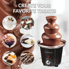 Impress quests with elegance and style at any special event. This chocolate fountain creates a decadent cascade of sweetness that will add mouth-watering fun to any occasion. Simply pour the recommended amount of melted white or dark chocolate into the base and switch on the motor. Watch as the chocolate is carried to the top of the tower where it flows down each tier in a mesmerizing display. Provide guests with fresh strawberries, marshmallows, pretzels, cookies, and other goodies for dipping. Cheese and barbeque sauces may also be used. The fountain easily disassembles for quick cleanup. Create a beautiful addition to any dining table, as well as an impressive display at events or casual gatherings with friends and family.