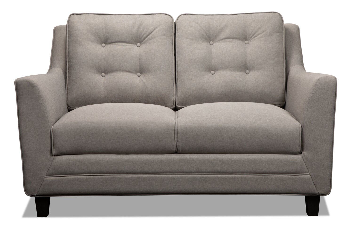 Keep your living room looking stylish when you add this Novalee loveseat. Taupe-coloured, linen-look fabric is neatly tailored to the furniture frame to make this piece look sharp. High-density foam fills the seating area so you can stay cozy during movie nights and family time. Plus, button-tufting on the back cushions brings an extra boost of plush feeling. For additional support, black plastic feet rest underneath to ensure this piece won't fall down on the job. This Novalee loveseat creates a chic and welcoming appeal, no matter where you place it in your home.