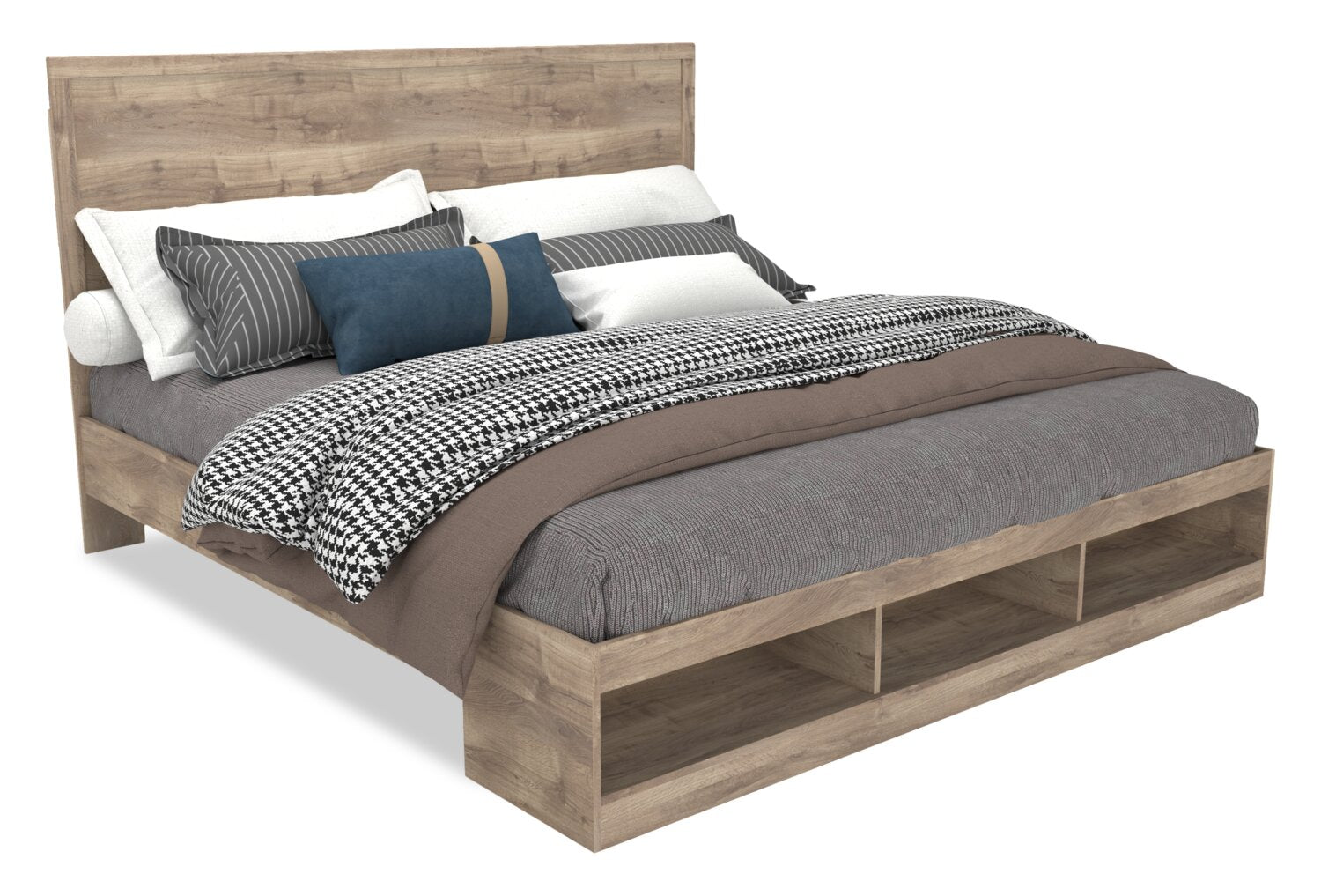 | Storage Options | Three shelves at the foot of the bed. |