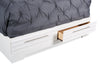 Add a splash of contemporary flair and a burst of fresh style to your home with this Olivia storage bed. Understated details including carefully scalloped ribbing and sleek pewter handles bring modern sophistication to your space, complementing affordability with elegance. Rest at ease knowing this Olivia package will bring you long-lasting storage thanks to high-quality engineered wood drawers within the bed side.