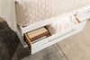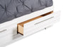 Add a splash of contemporary flair and a burst of fresh style to your home with this Olivia storage bed. Understated details including carefully scalloped ribbing and sleek pewter handles bring modern sophistication to your space, complementing affordability with elegance. Rest at ease knowing this Olivia package will bring you long-lasting storage thanks to high-quality engineered wood drawers within the bed side.