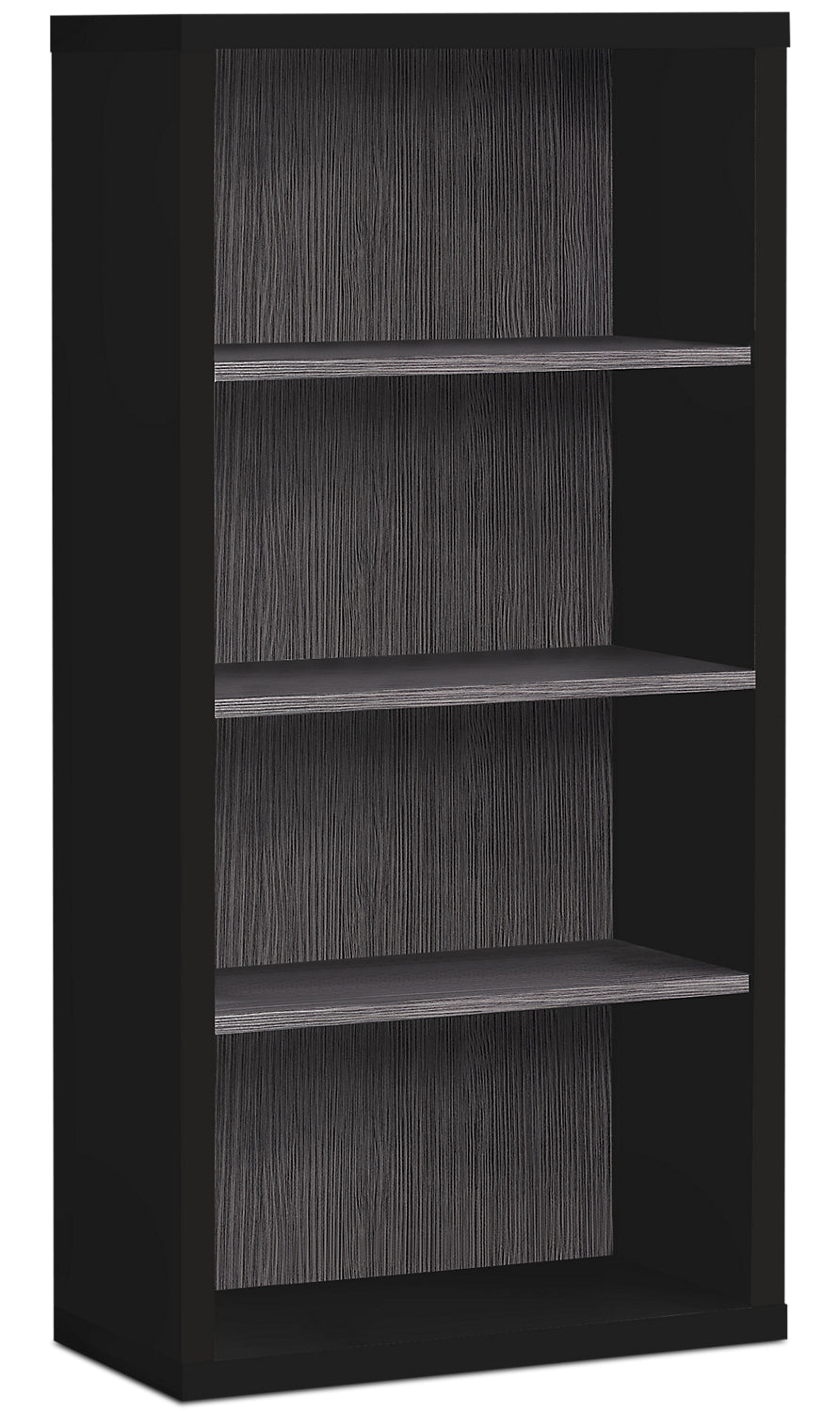 Smart and sleek, this Orion bookcase is finished in black and has a grey wood grain look for a chic style. Three adjustable shelves can make room for large books and home decor items. With clean lines and thick panels, this bookcase brings a sharp contemporary look to your space. Add this bookcase to your room for a convenient organization space with a smooth style.