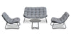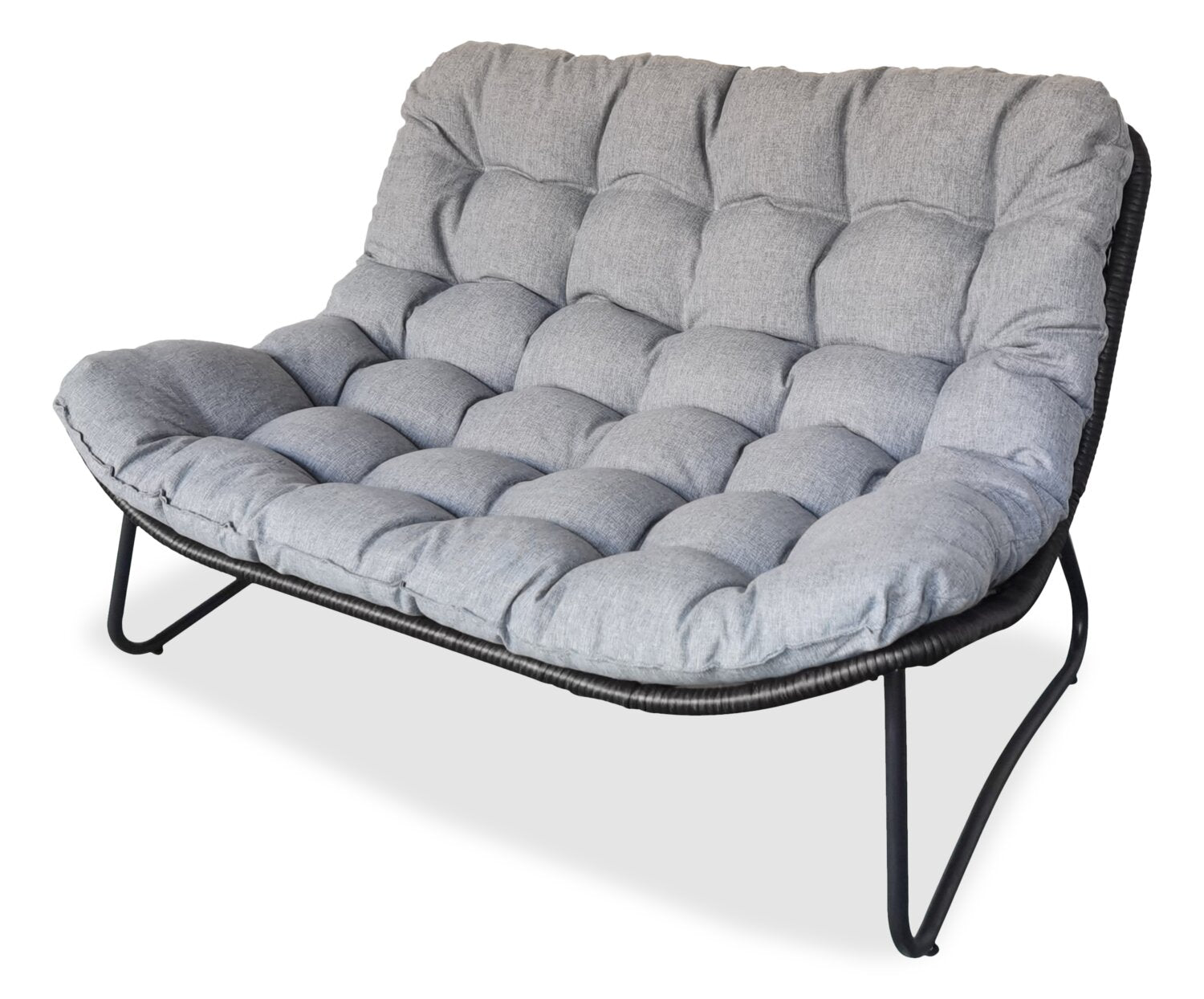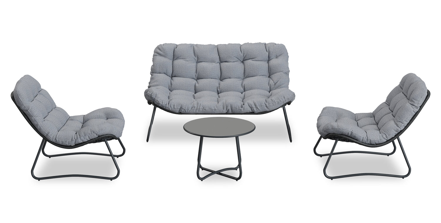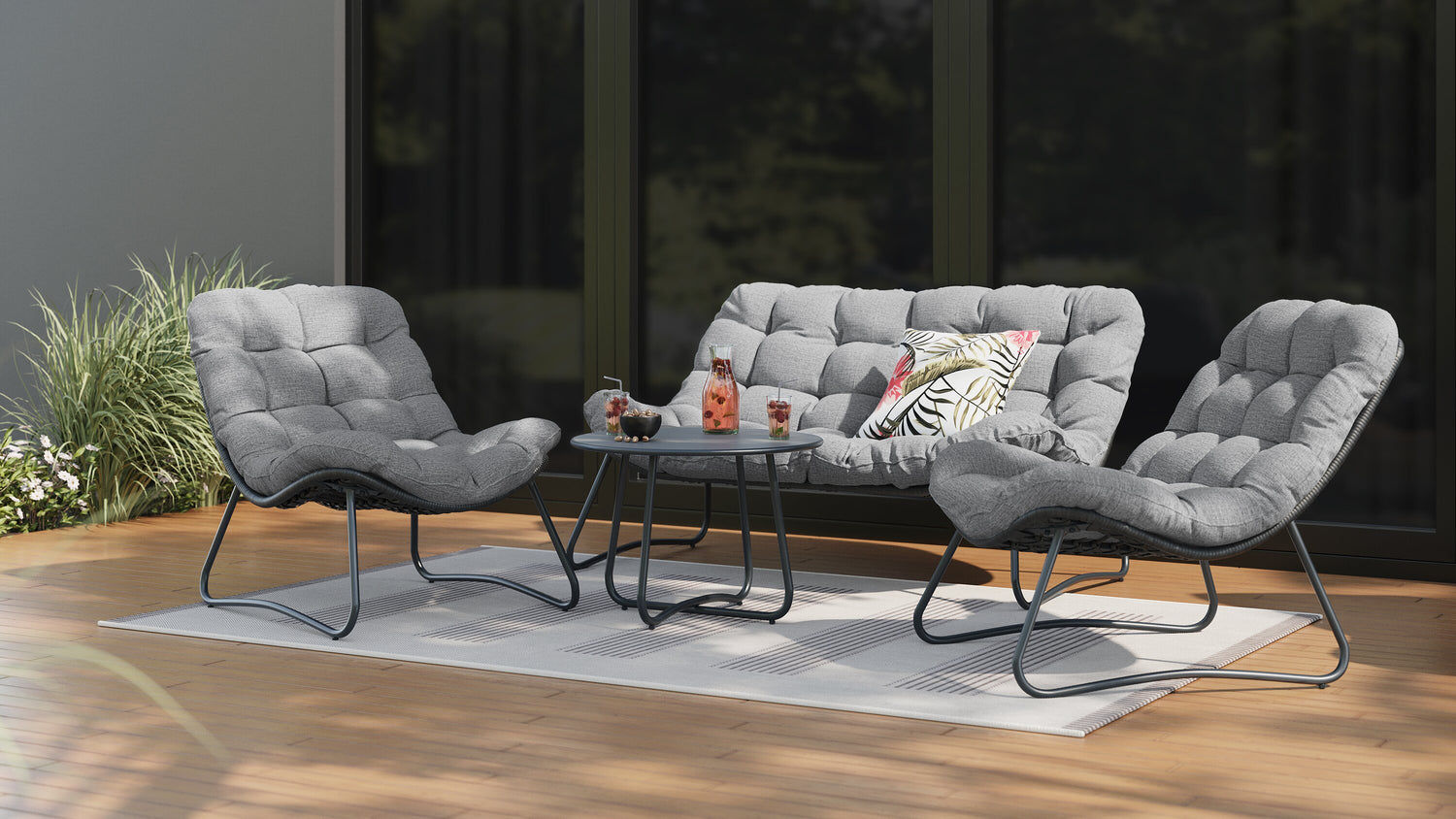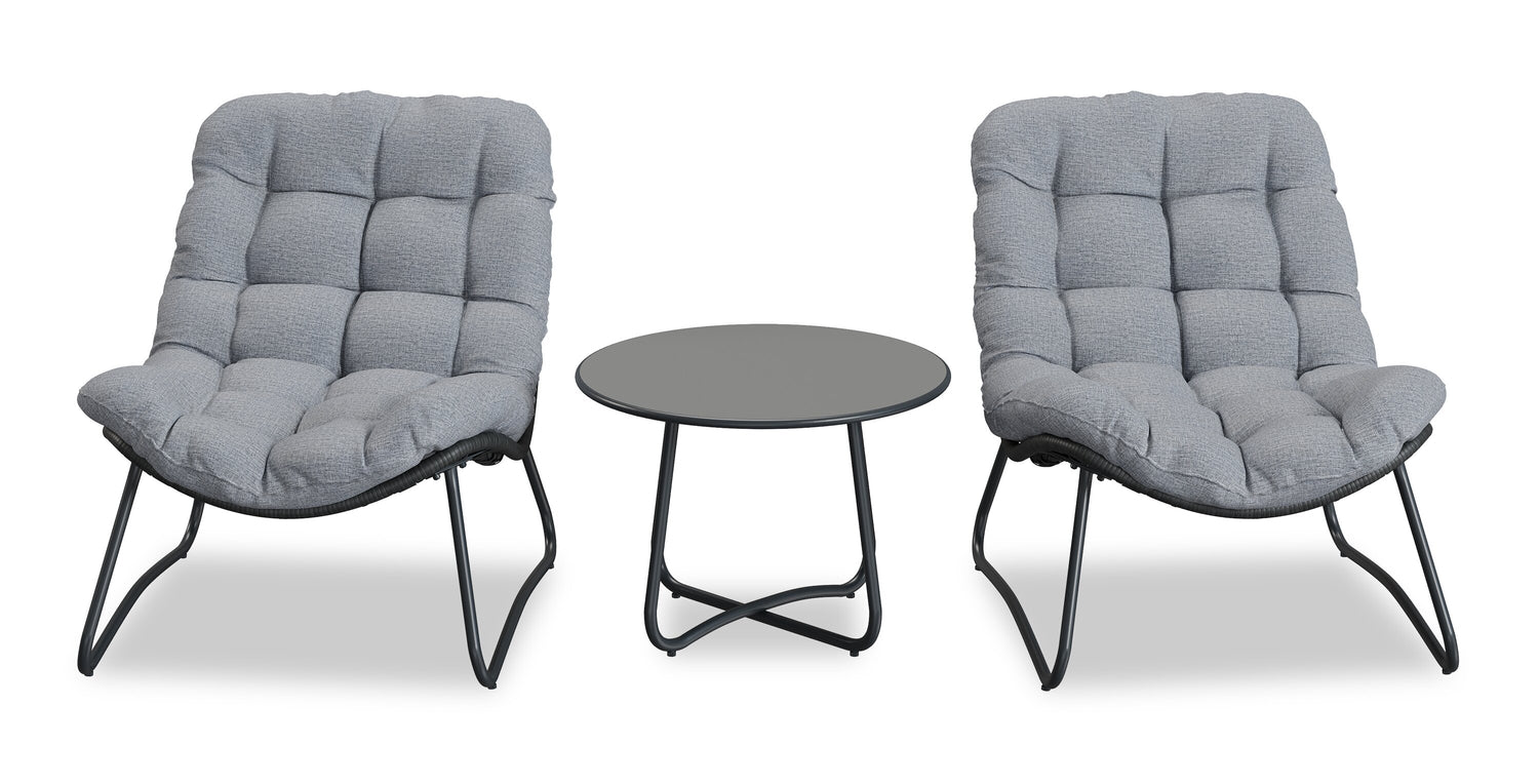 | Accent Details | The tufted light grey cushion pairs well with the dark rattan seat, metal open frame legs and steel table. |