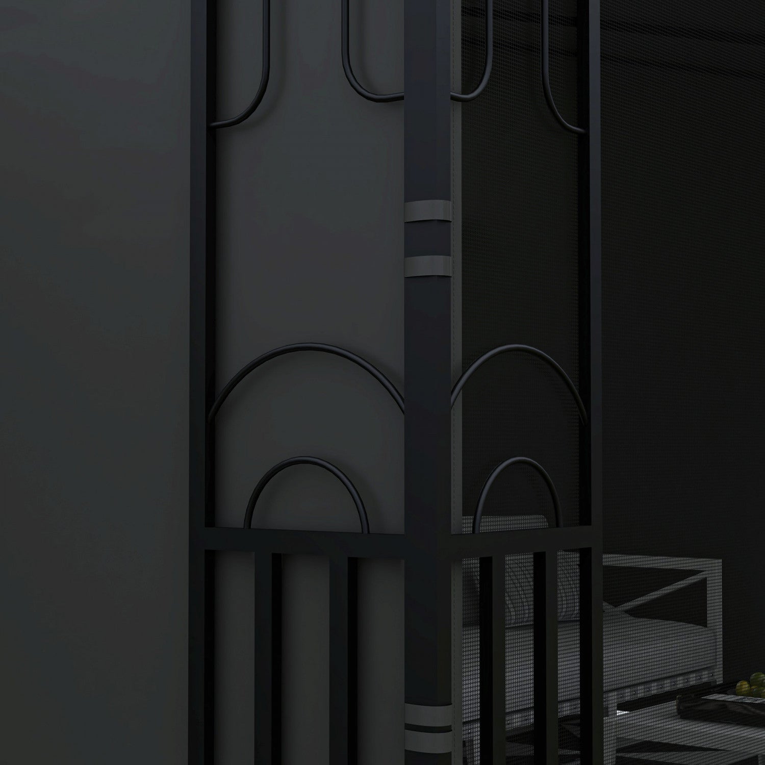 | Additional Information | ● Colour: Dark Grey ● Materials: Steel, Polyester fabric ● Overall Dimensions: 157.5" L x 117.3" W x 78.7" /106.3" H (400 x 298 x 200/270 cm) ● Column Spacing: 125.2" L x 101.6" W (318 x 258 cm) ● Screened Column Size: 15.7" W x 78.3" H (40 x 199 cm) ● Windproof Level: 5-6 ● Snow Load: 1.4lbs/ft² (7kg/㎡) ● Item Label: 84C-445V00CG |