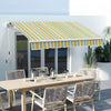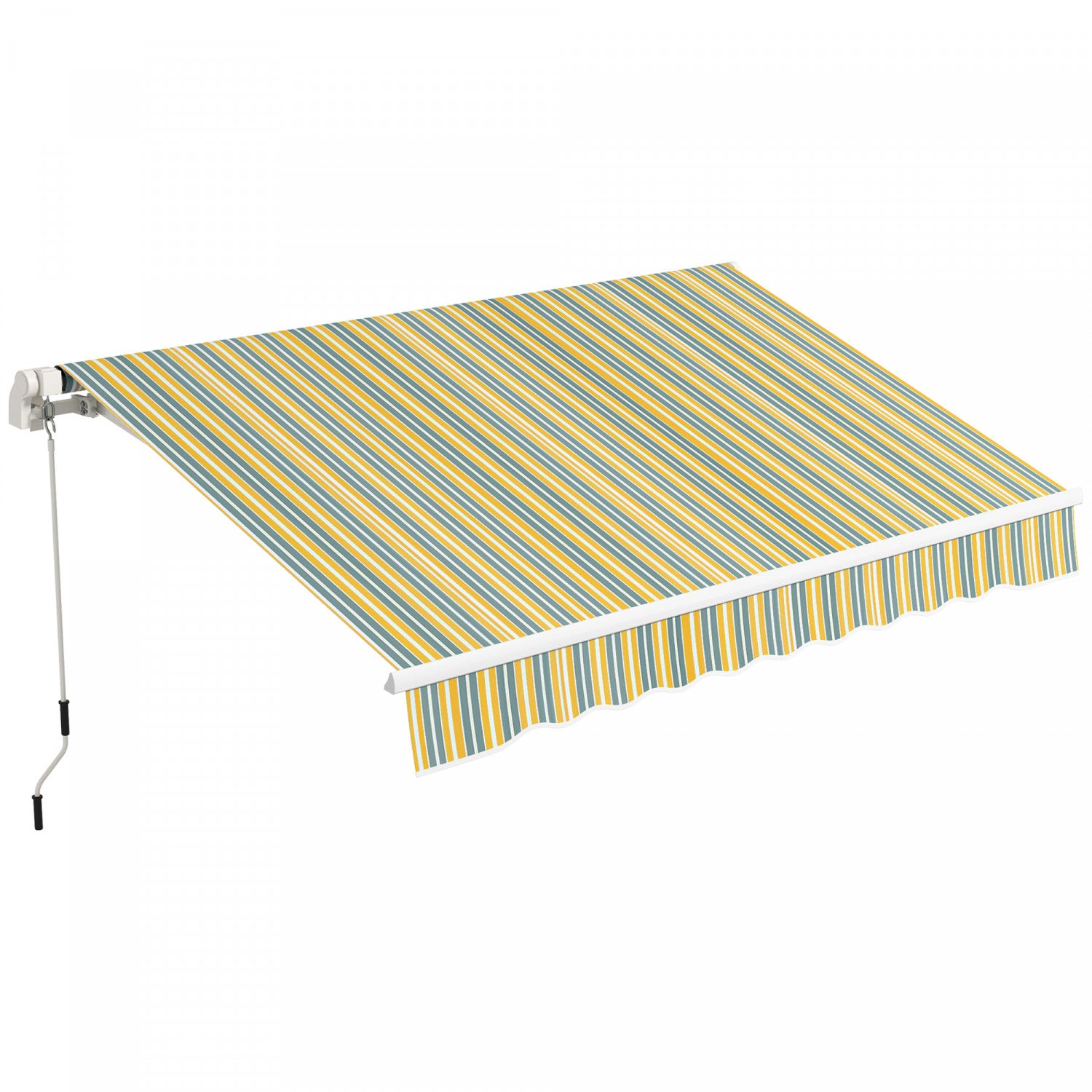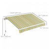 | Additional Information | ● Colour: Yellow and Grey ● Materials: 280 GSM Polyester, Aluminum, Metal ● Overall Dimensions: 116.9" W x 78.7" D (297 x 200 cm) ● Crank Handle: 59.1" L (150 cm) ● Power Cord Length: 4.4 ft (1.35 m) ● Recommended Installation Height: 8.2-11.5 ft (2.5-3.5 m) ● Rated Voltage: AC 110V-240V, 50/60Hz ● Wind Proof Level: 2 ● Item Label: 840-266V81MX |
