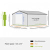 | Key Features | ●Spacious design to store all your outdoor tools, equipment and gardening gear ●Made from colour steel with a protective top coat for durability and stable ●Sloped roof to prevent water build up ●Double sliding doors for easy access in and out ●Four ventilation slots ensure good air circulation ●Floor foundation included for an even structure on the ground ●Assembly required, please use gloves when installing |