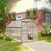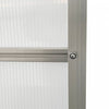 | Key Features | ● Walk-in greenhouse with spacious design for growing flowers, vegetables, and fruits ● Aluminium frame is durable for long-term use ● UV protection polycarbonate panels keep your plants protected from harsh sunlight ● Sliding door design for easy access in/out ● 5-level adjustable windows ensure good airflow inside ● Tilted roof with rain gutters to prevent water build-up ● Galvanized base provides stable support and 4 stakes are included to pin into the soil ● Assembly required |