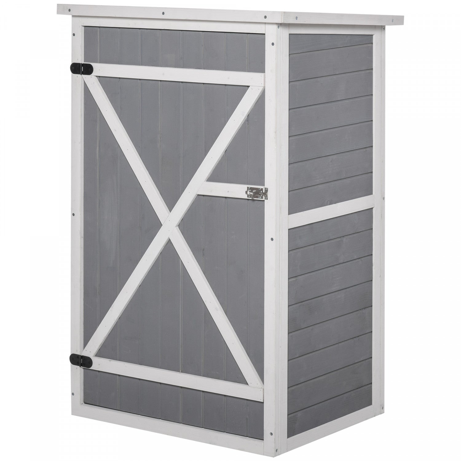| Key Features | ● Compact design for smaller spaces ● Fir wood body with waterproof paint for extra protection ● Two shelves on the left for organization, with an open right side for bulkier items ● Front door with a bolt latch for easy access and security ● Slatted bottom shelf to prevent water build-up inside ● Assembly required |