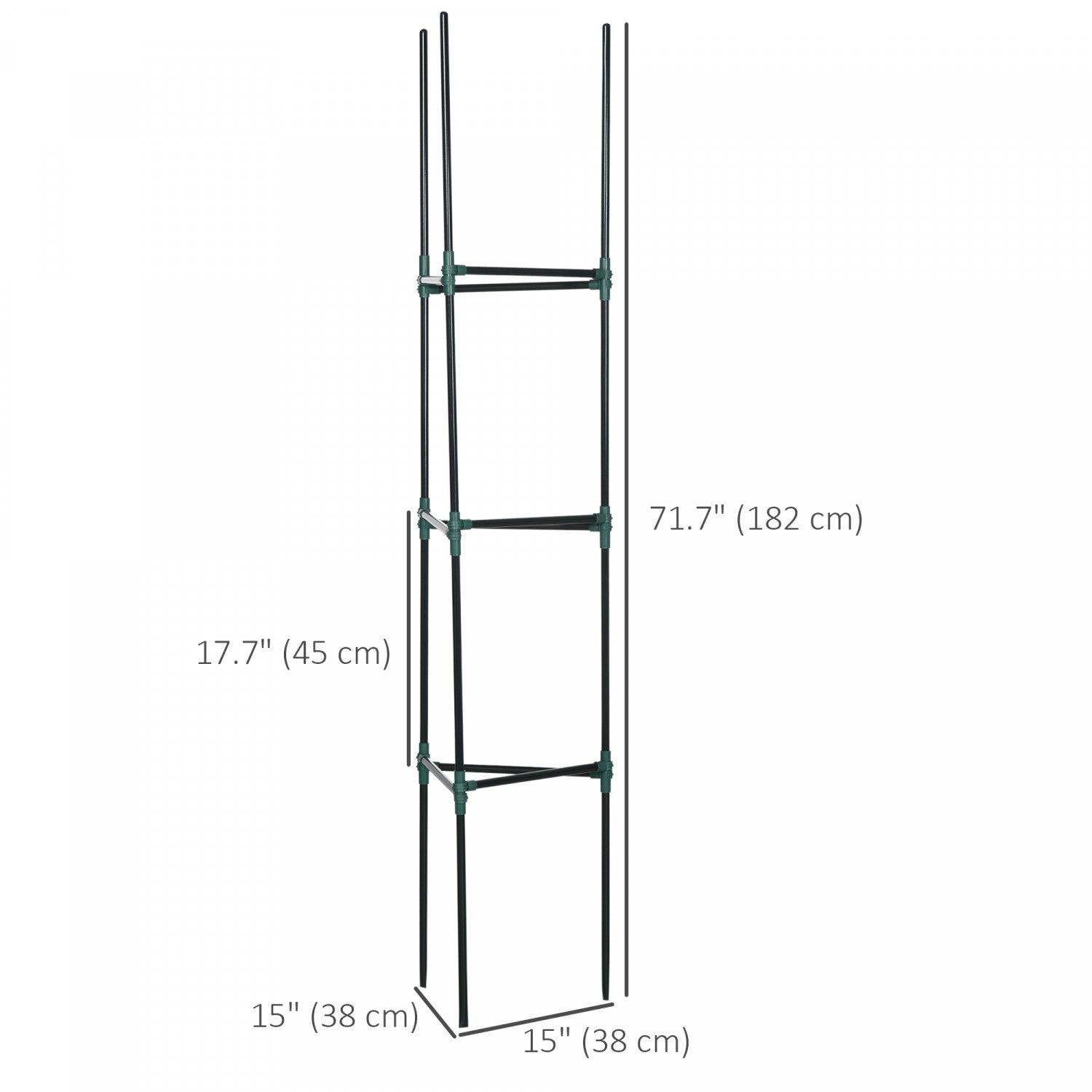 | Additional Information | ● Colour: Dark Green ● Material: Steel, PP ● Overall Dimension: 15" L x 15" W x 71.7" H (38 x 38 x 182 cm) ● Shelf Spacing: 17.7" (45 cm) ● Item Label: 845-784V00DG |