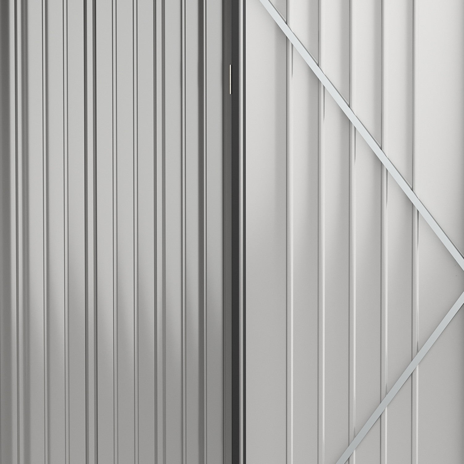 | Key Features | ● Large room can store garden tools, lawn care equipment, pool supplies, and more ● Steel structure and galvanized finish are sturdy and anti-rust for reliable daily use ● Sloped roof will help rainwater to drain quickly ● Lockable door ensures more security of your items ● Floor foundation is not included ● Assembly required |