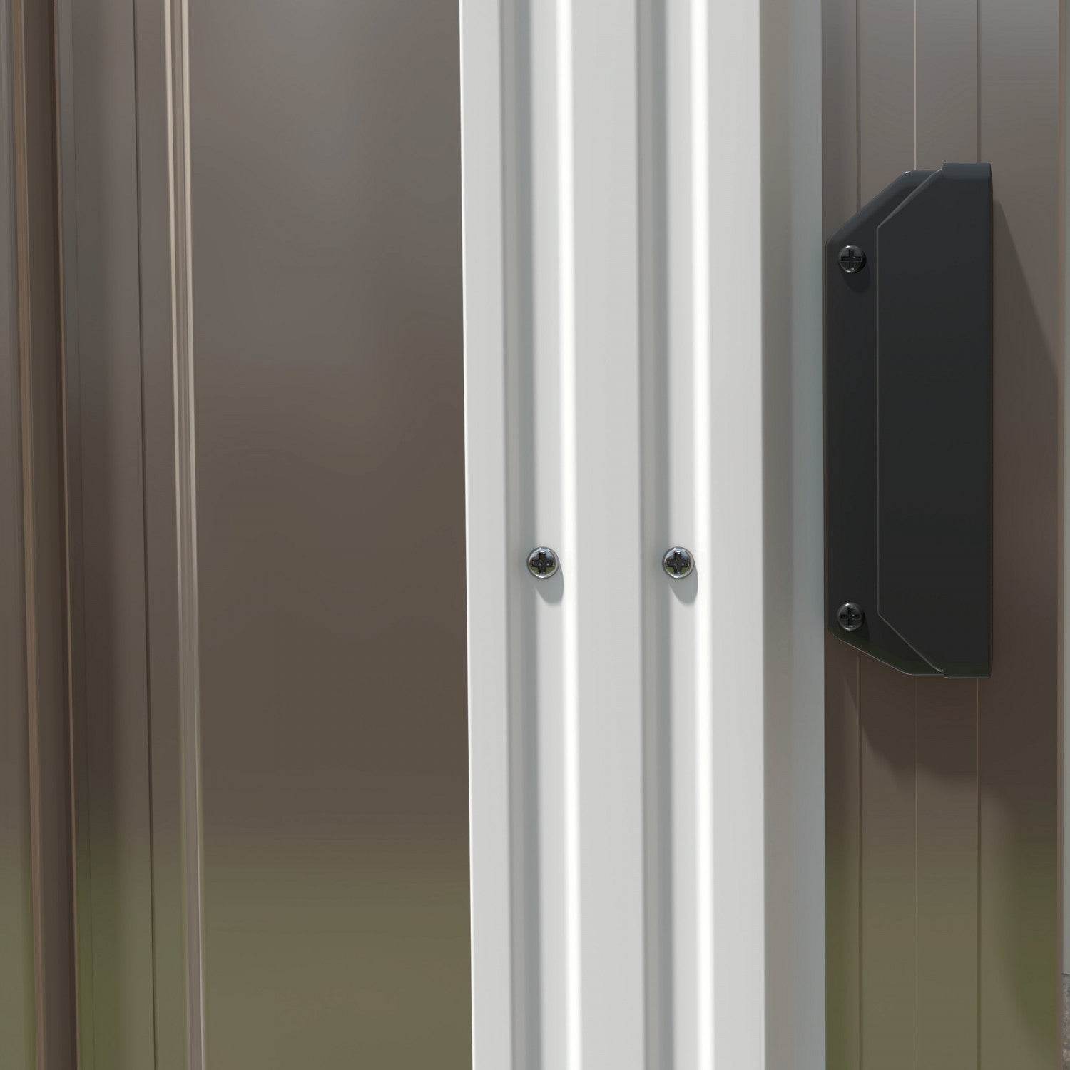 | Additional Information | - Colour: Light Grey; - Materials: Galvanized Steel; - Overall Dimensions: 60.6" W x 81.3" D x 63"/71.3" H (154 x 206.5 x 160/181 cm); - Internal Size: 53.9" W x 71.3" D (137 x 181 cm); - Floor Area: 55.5" W x 76.8" D (141 x 195 cm), 30ft² (2.81 m²); - Door Dimensions: 24.4" W x 60.6" H (62 x 154 cm); - Vent Dimensions: 8.9" W x 3.5" H (22.5 x 9 cm); - Floor Foundation Size: 52" W x 55.5" D (132 x 141 cm); - Snow Rating: 8.8 lbs/ft² (40 kg / m²); - Item Label: 845-983V00LG; |