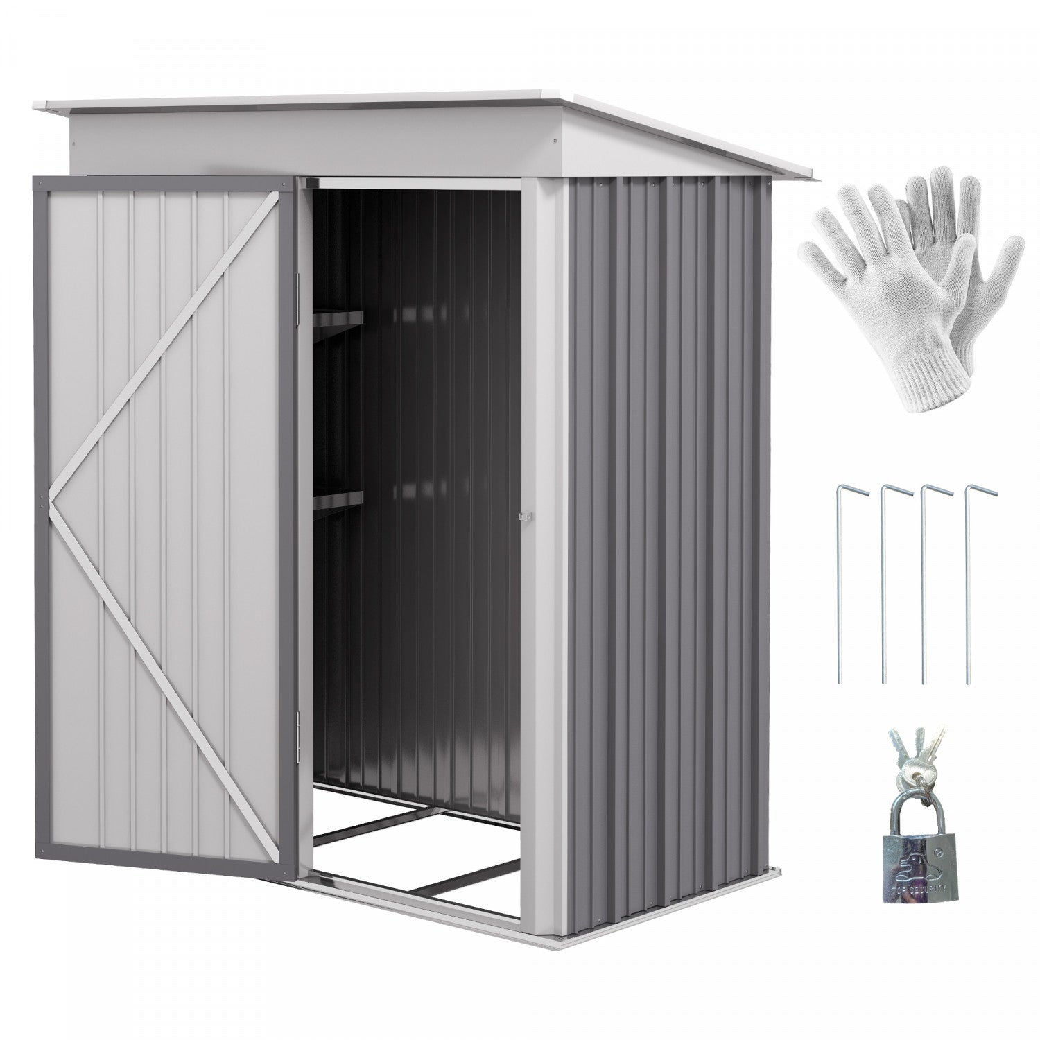 | Key Features | ● Small outdoor storage shed so you can store lawn care equipment and garden tools ● 2-tier adjustable shelf for flexible storage ● Lean-to design saves space and helps it stay stable by using existing structures ● Protective gloves and a tutorial video ensures smooth and easy assembly ● Locking door stops would-be thieves and keeps children and pets away from power tools ● Made with outdoor-ready, water-safe steel |