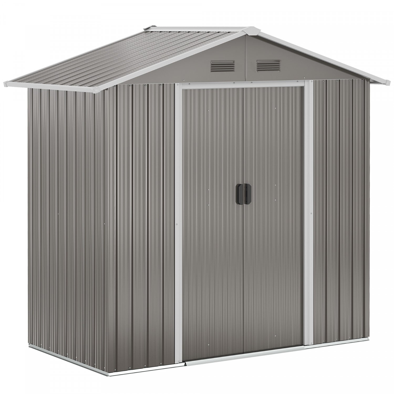 | Key Features | ● Lots of storage space ● Steel tile roof and walls, rust-resistant and rain-proof ● Sloping roof to prevent water buildup ● Four vents ensure aeration inside ● Double sliding door for easy access in and out ● Door is lockable for item safety (lock not included) ● Assembly required |