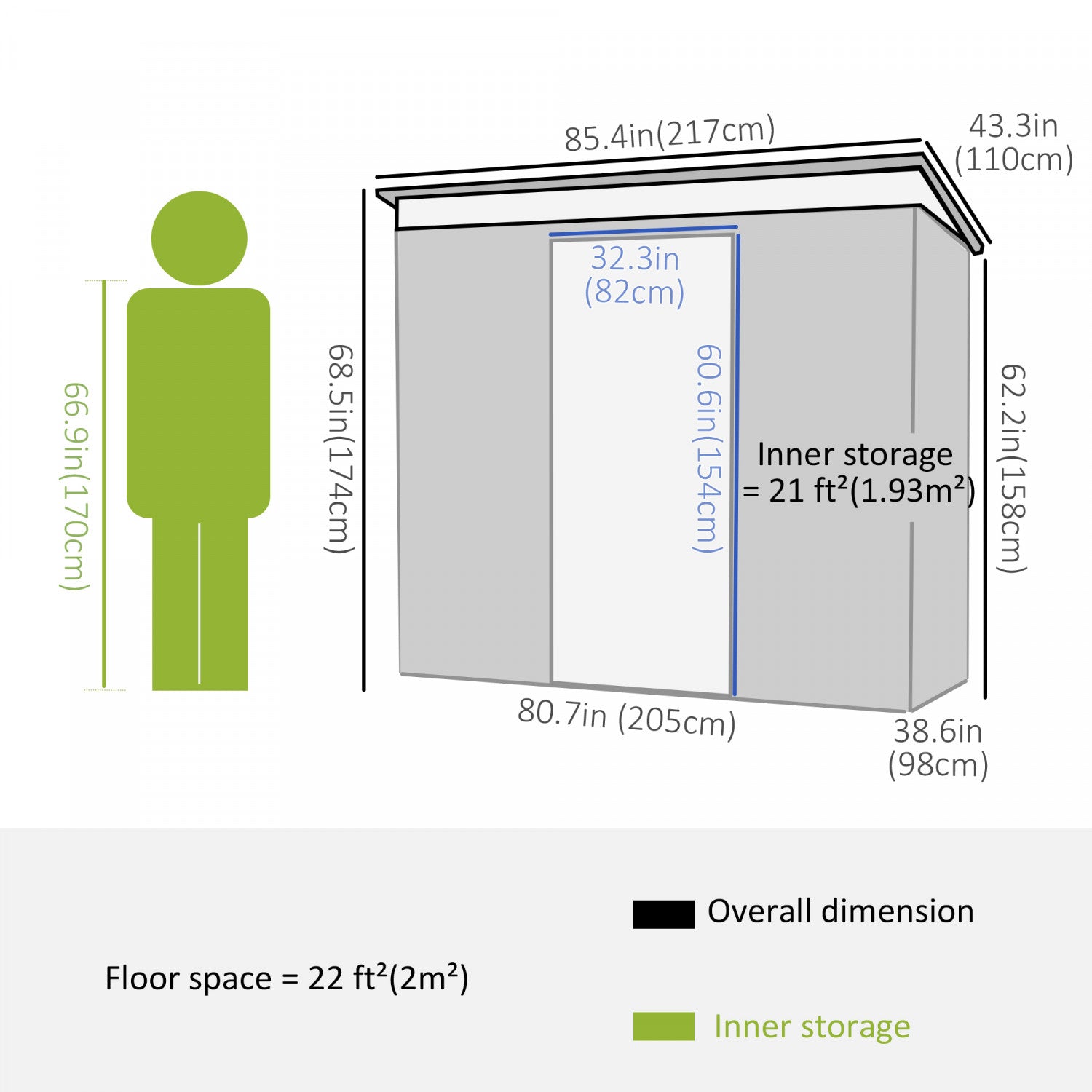| Key Features | ● Ample storage space ● Steel panel walls and roof, resistant to rust and rain ● Sloped roof prevents water build-up ● Double sliding door for easy access in and out ● Lockable Door for security ● Two ventilation slots to keep the interior cool and airy ● Durable galvanized steel structure ● Assembly required |
