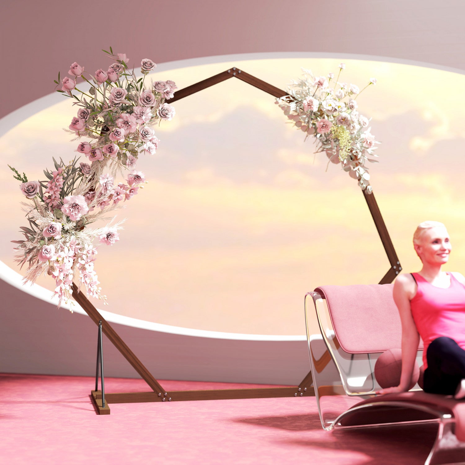 | Key Features | - Unique heptagon shape enhances aesthetic appeal; - Natural fir wood construction provides durability; - Polishing and painting ensure weather resistance; - Triangular bases and secured joints offer stability; - Ground-fixable base enhances safety and sturdiness; - Adaptable for decoration with flowers, lights, or balloons; - Assembly required; |