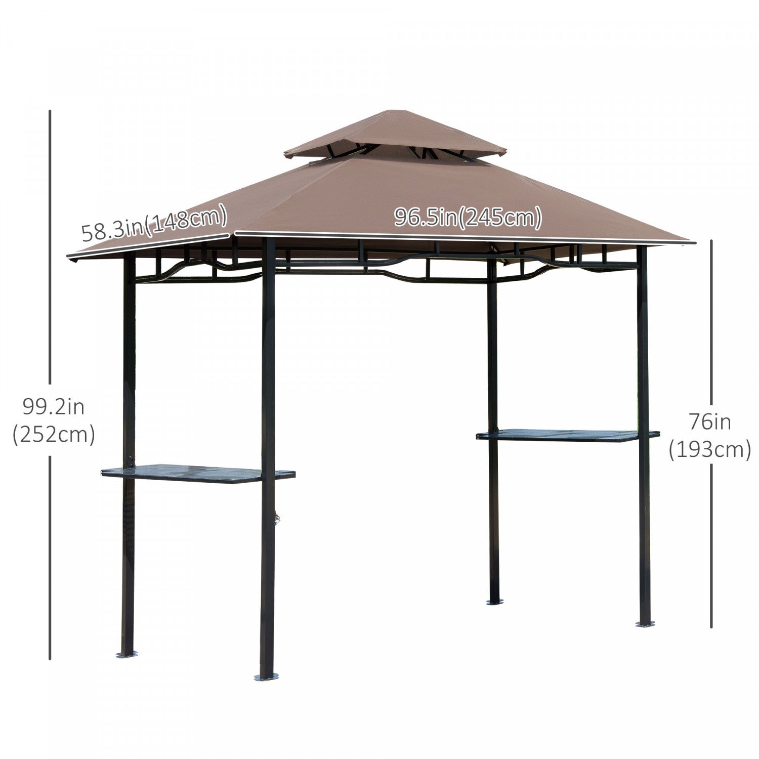 | Key Features | ● Ideal accompaniment for your grill or outdoor kitchen ● Double-tier top cover design not only looks good but is designed to make Good ventilating ● Water-resistant, fade and fire resistant polyester cover ● Reinforced top and 8 screws to make the canopy more stable ● Rust free steel frame with powder coating ● Includes 2 iron meshes for putting the foods and cook tools ● A crafted bottle opener on the frame ● Easy to assemble |
