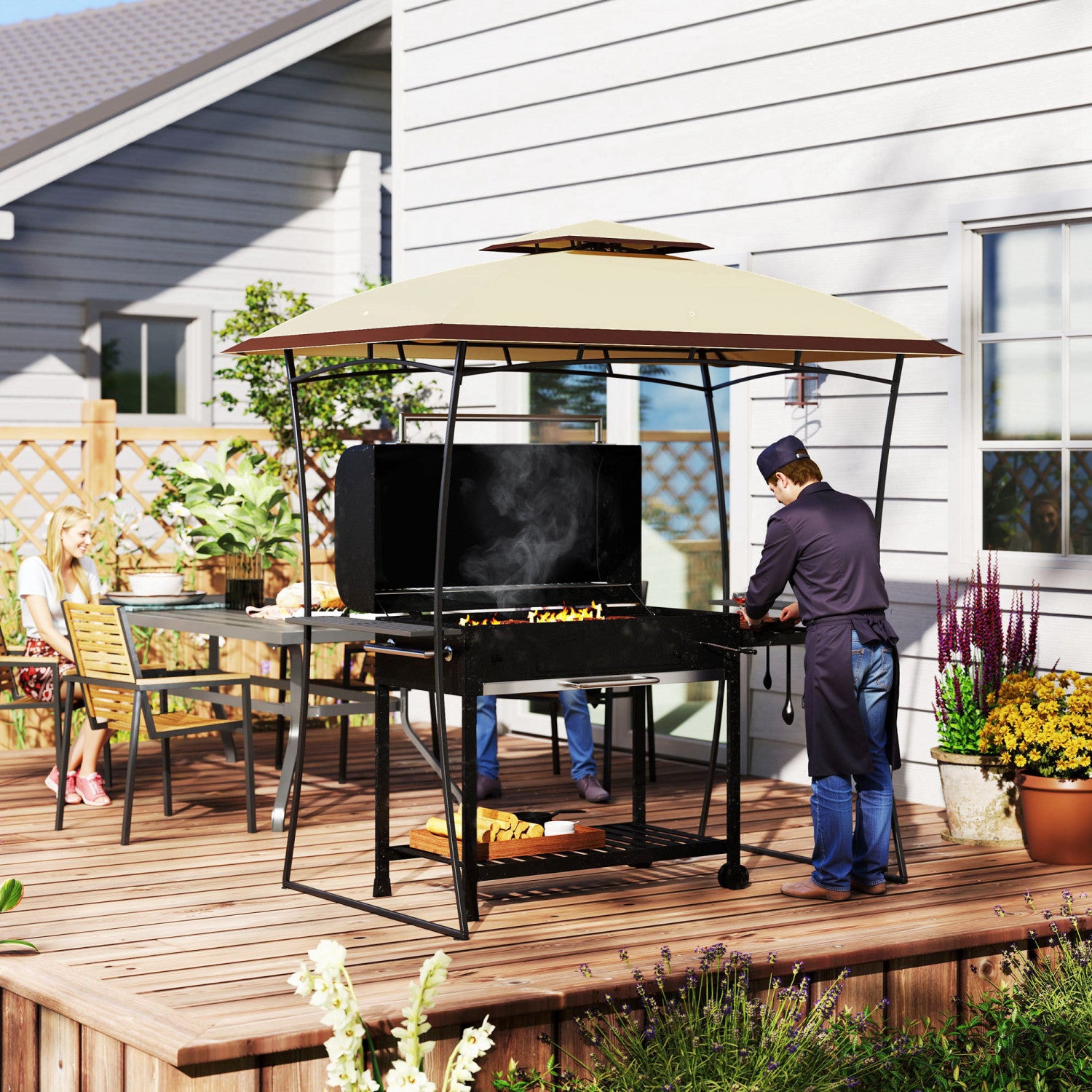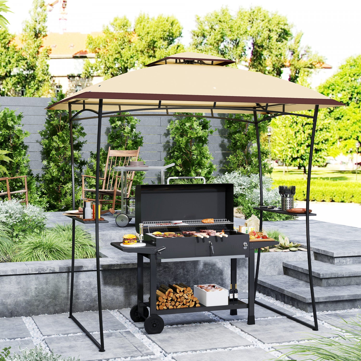 | Key Features | - Double-top design enhances airflow, reducing smoke accumulation during BBQs; - PU coated canopy is flame retardant and splash proof for safety; - Water leakage holes prevent rain accumulation, keeping gatherings dry; - Side shelves offer convenient storage for condiments and utensils; - Canopy includes a hook for easily hanging a light; - Powder-coated steel frame resists rust, deformation, and wear; - Ground stakes and expansion screws included for stable assembly; |