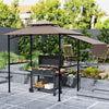| Key Features | - Adjustable height awning shields against weather and sunlight; - Double-top design enhances airflow, preventing smoke accumulation; - PA-coated, flame retardant, anti-UV top adds safety; - Includes two side shelves, five hooks, and a lamp hook; - Powder-coated frame resists weather, includes ground nails and screws for stability; - Assembly required; |