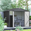 | Additional Information | - Colour: Dark Grey; - Material: Galvanized Steel; - Overall Dimensions: 97.2" W x 68.5" D x 82.3" H (247 x 174 x 209 cm); - Eave Height: 68.9" (175 cm); - Bottom Size: 94.1" W x 65.4" D (239 x 166 cm), 43 sq.ft (3.95 m².); - Inside Size: 89.4" W x 60.6" D (227 x 154 cm); - Single Door Size: 50" W x 67.7" H (127 x 172 cm); - Window Size: 17.7" W x 17.3" H (45 x 44 cm); - Vent Dimensions: 7.5" W x 3.5" H (19 x 9 cm); - Snow Capacity: 10.24 psf (50 kg/㎡); - Item Label: 84H-161V00CG; |