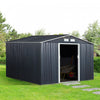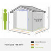| Key Features | ● Spacious storage area for garden tools, lawn care equipment, or pool supplies ● Built from galvanized steel and durable polypropylene (PP) construction ● Sloped roof prevents water build up ● Double sliding doors for easy entrance and access ● Four vents for lighting and airflow ● Assembly required |