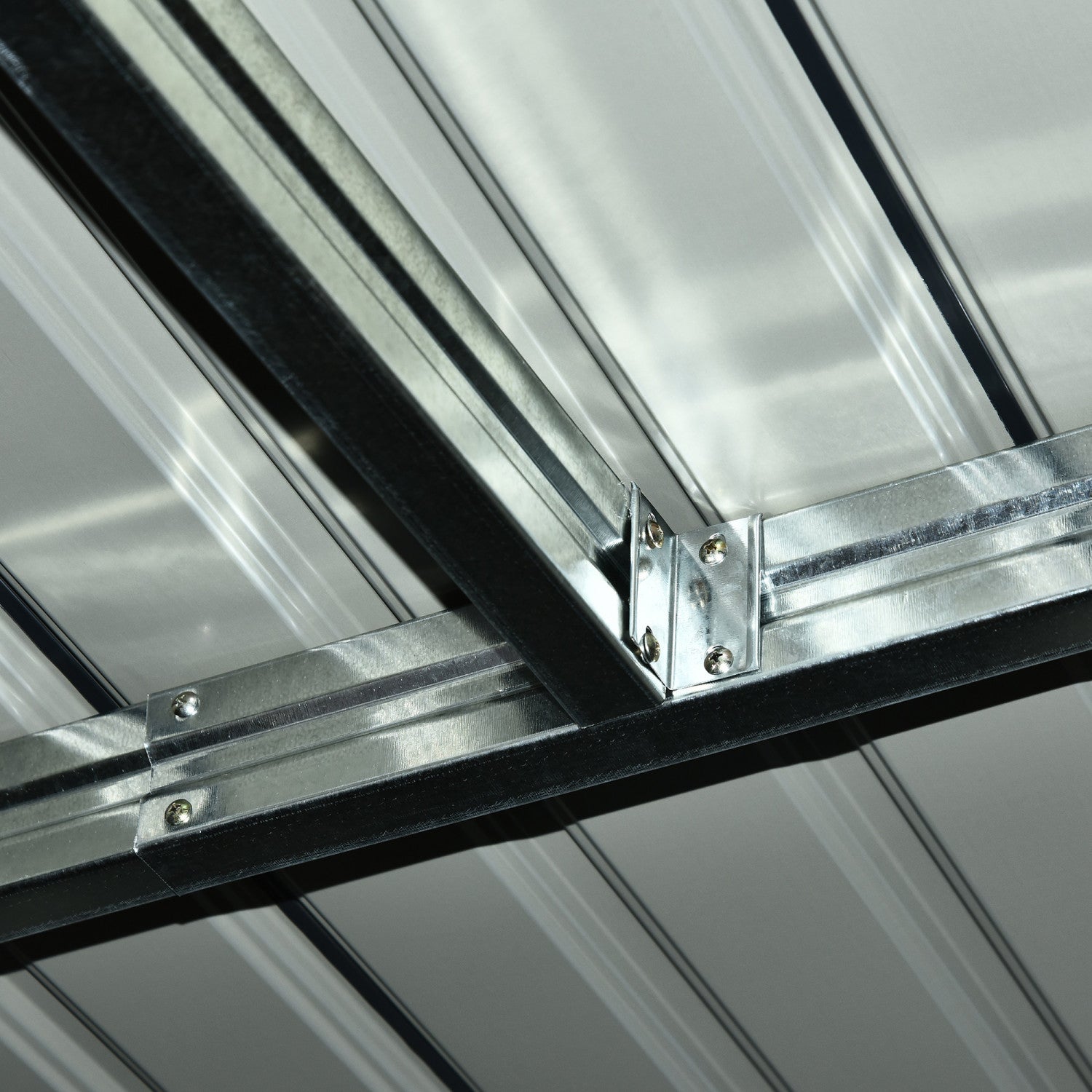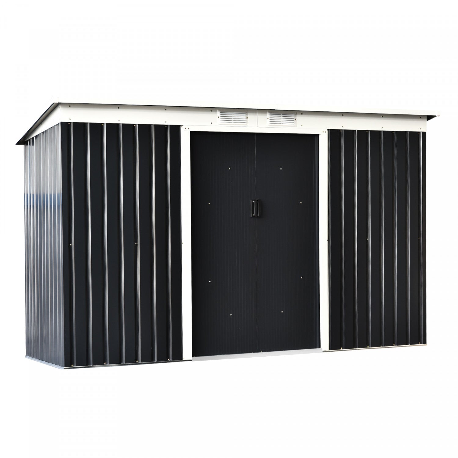 | Key Features | ● Spacious design to store all your outdoor tools, equipment and gardening gear ● Made from galvanised steel with a protective top coat for durability and stable ● Sliding and lockable double door for easy access ● 2 ventilation windows ensure aeration inside, preventing mould and mildew build up ● Steel floor foundation included for an even structure on the ground ● Assembly required, please use gloves when installing |
