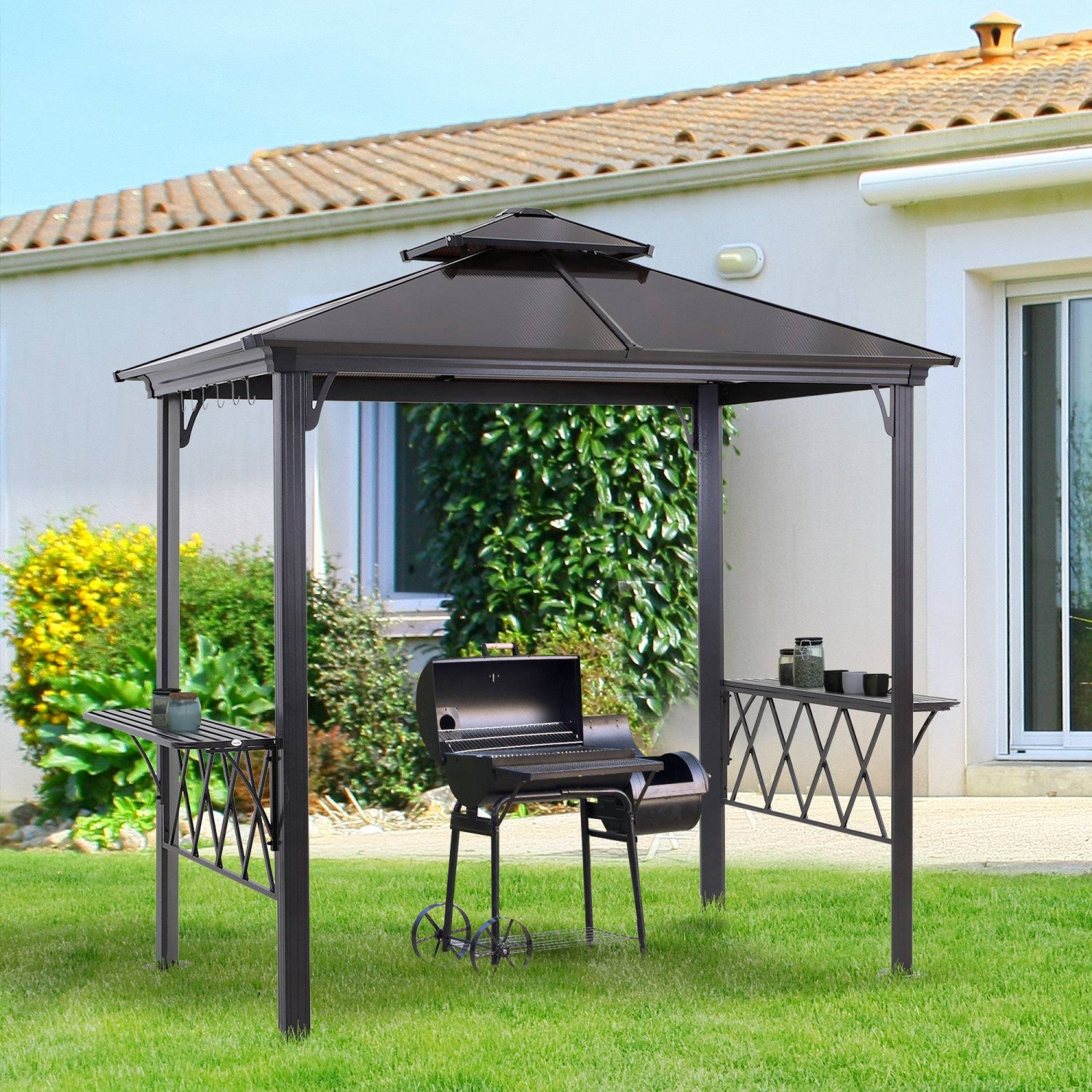● Double-tiered vented roof offers smoke ventilation and stability against windy conditions