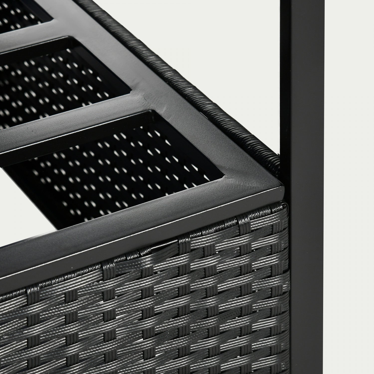 | Additional Information | - Colour: Black Frame, Blue Fabric, White and Green Pillow; - Material: Steel, PE Rattan, Polyester; - Overall Dimension: 90.6" L x 90.6" W x 82.7" H (230 x 230 x 210 cm); - Three-seater Dimension: 67.7" W x 22.4" D x 12.6" H (172 x 57 x 32 cm); - Double Sofa Dimension: 45.3" W x 22.4" D x 12.6" H (115 x 57 x 32 cm); - Pergola Height: 82.7" (210cm); - Weight Capacity: 792 lbs (360 kg)(three-seater), 528 lbs (240 kg)(double sofa); - Item Label: 860-261V00BU; |