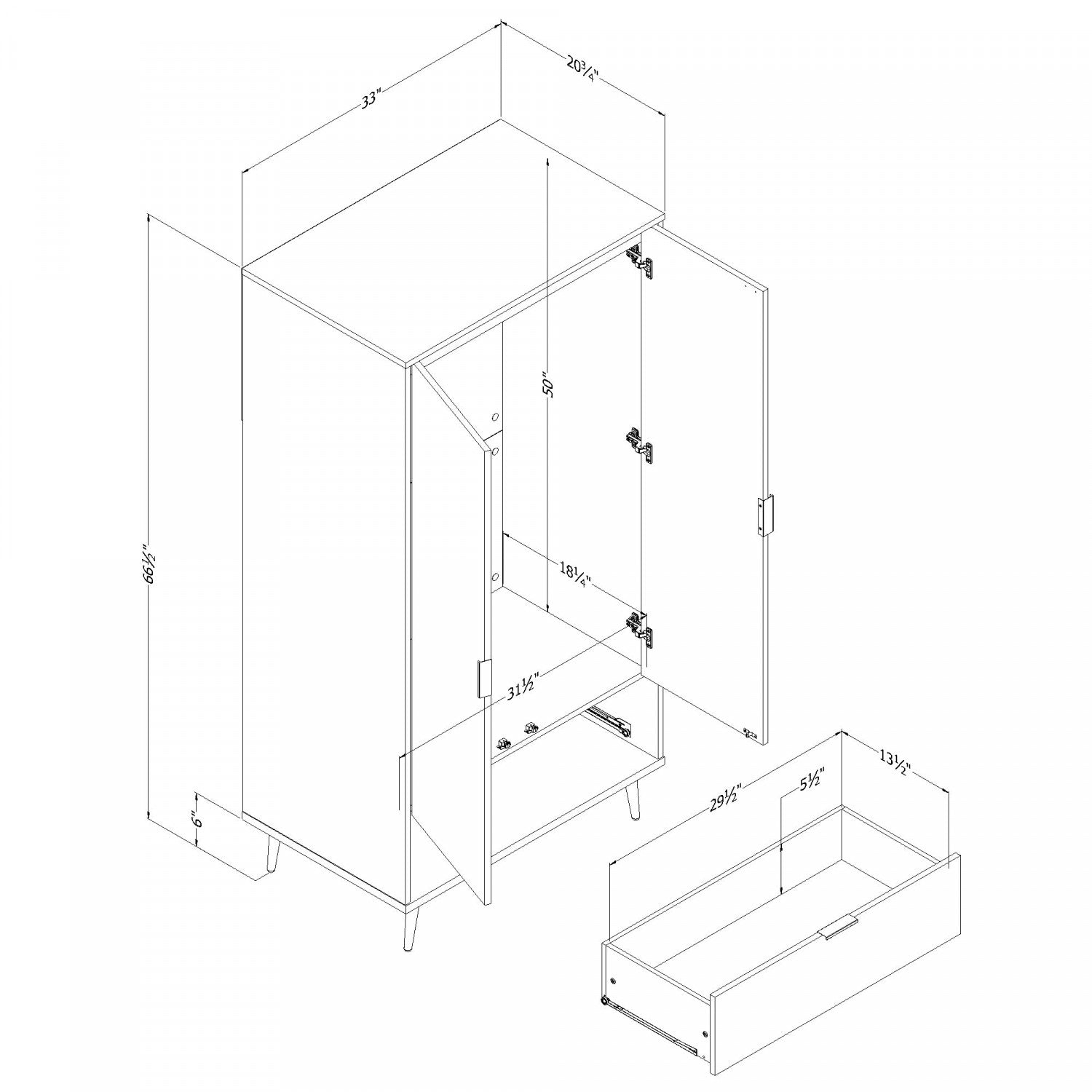 Vertical storage for your clothes. Installed against the wall in your bedroom, this armoire features a wardrobe rod behind the doors and a large drawer at the bottom to optimize storage in the room. Hang delicate garments such as shirts, dresses and suits, then fold t-shirts, pajamas and pants in the drawer. This piece of furniture takes advantage of the full height of the wall. This frees up a lot of floor space. A modern wardrobe armoire for the bedroom nothing is more timeless than a contemporary bedroom! To make the space even more complete and functional, add this pretty armoire mounted on an angled base. Its soft metal handles match perfectly, for a trendy result.