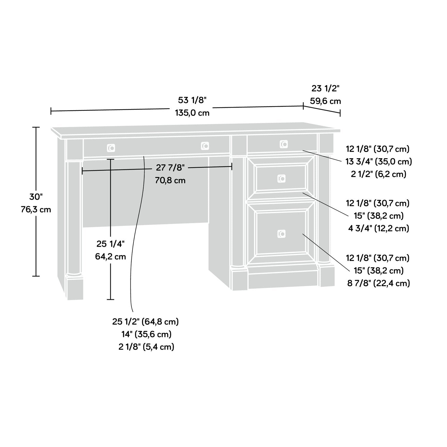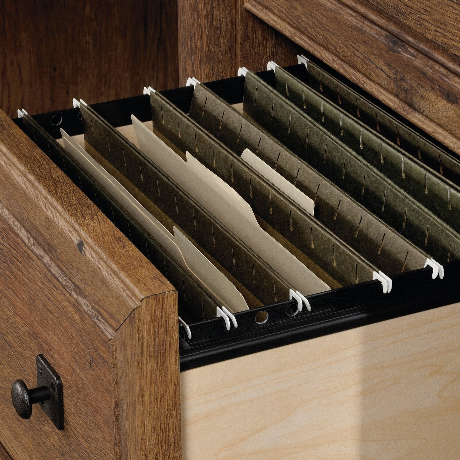 | Storage Options | Three drawers, one with full extension slides to hold letter-size files. |