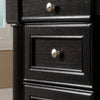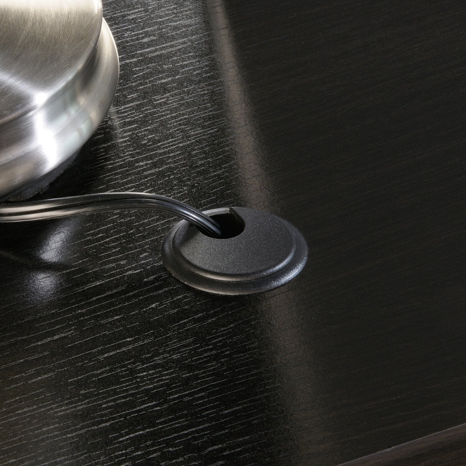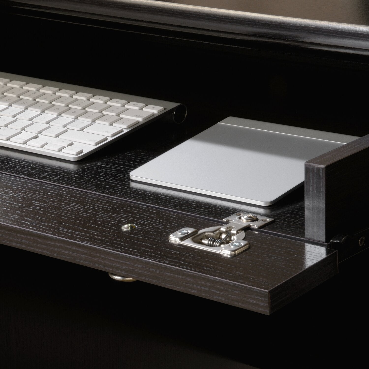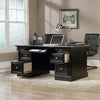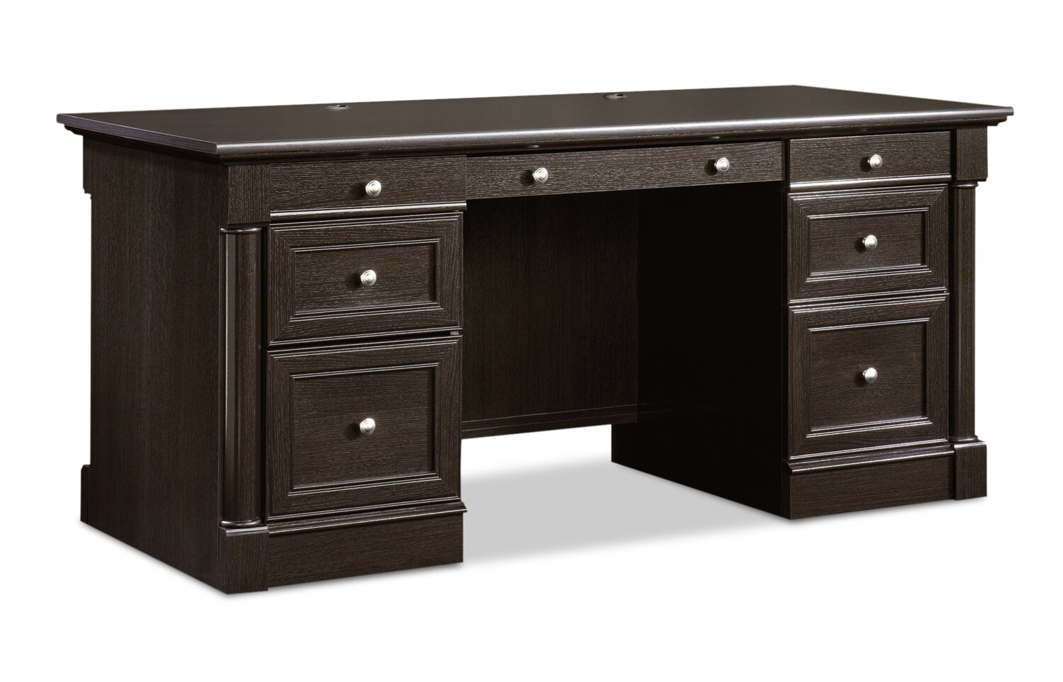 | Storage Options | Flip-down panel for a laptop, four drawers including lower file drawers for letter- or legal-sized hanging files, and two cabinets on the reverse side. |