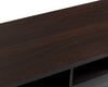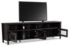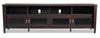Put your big screen television on proper display with this stately Palmer TV stand. With this stand's dark colour and generous storage space you can create a sharp and tidy entertainment space in your home. The dark reddish-brown woodgrain looks dignified and coordinates easily with most home decor colour palettes. Four media cubbies help protect your entertainment consoles, while four large cabinets underneath provide ample space for magazines, controllers and other home essentials. Don't forget to pick up popcorn because movie night is ready to go.