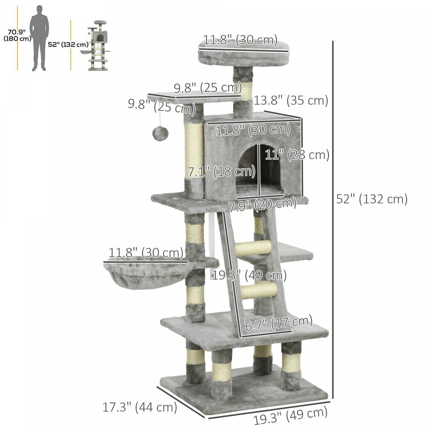 | Key Features | ● Multi-activity design of perches, a hammock, a bed and a large house to keep them entertained; ● Particle board frame for strength and durability, with a bottom base to keep it upright and stable; ● Sisal scratching posts allow your cat to sharpen their claws safely; ● Soft and comfortable plush covering for safety; ● The cat condo is suitable for cats under 5kg, assembly required; |